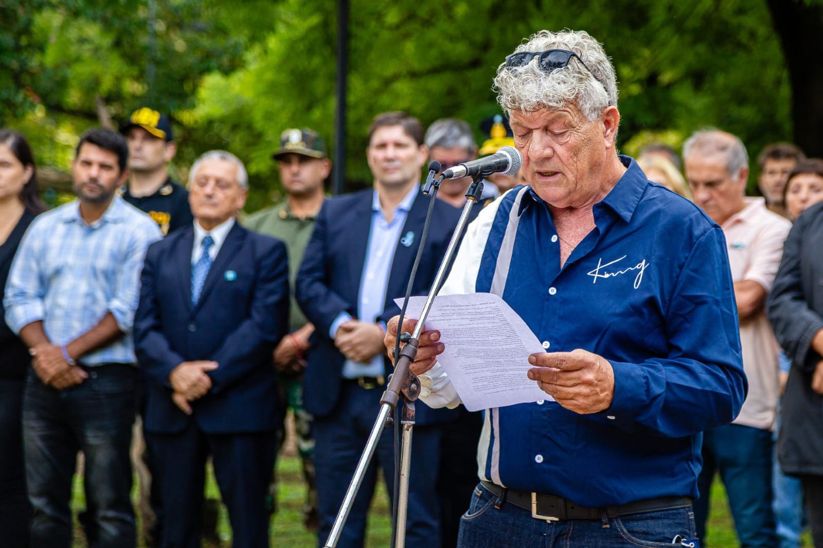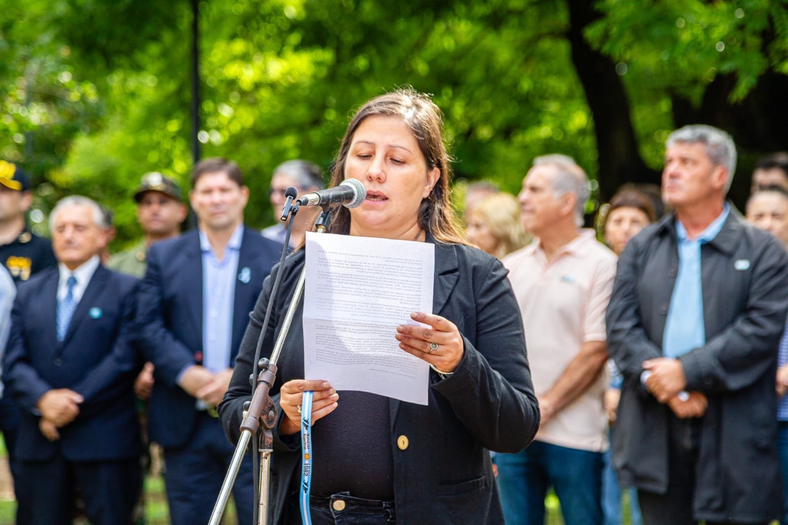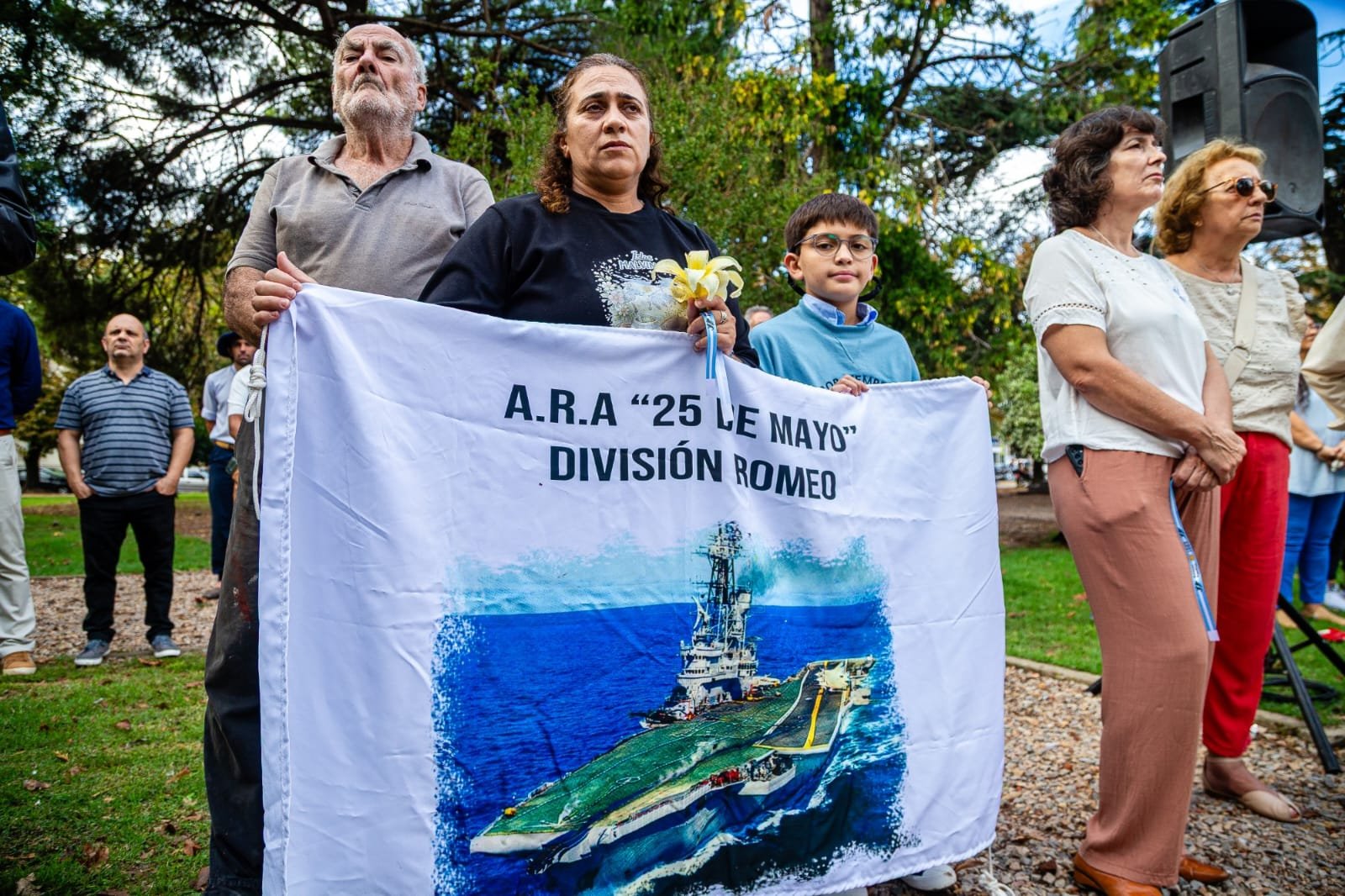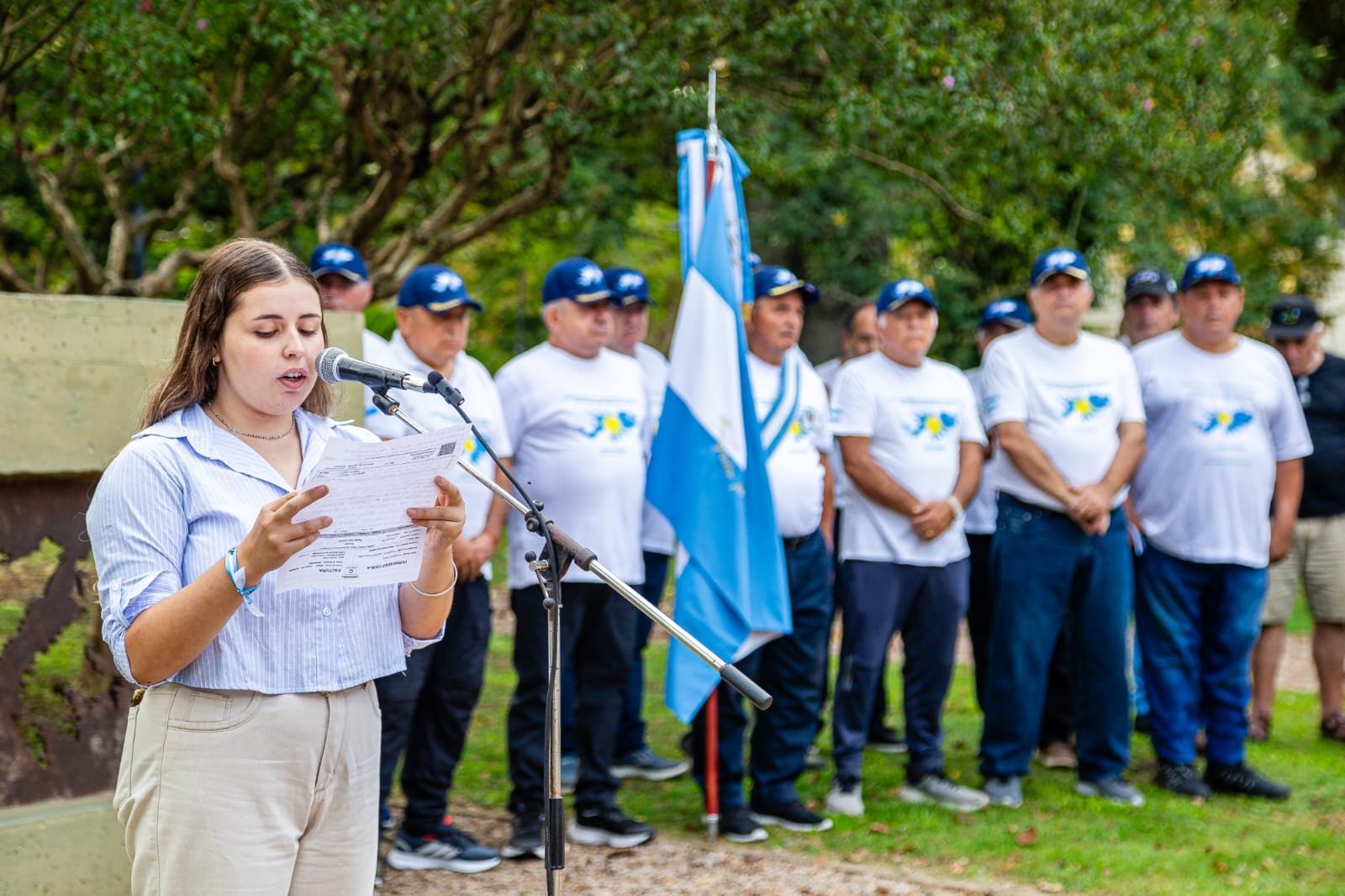 En representación de las familias, Emily Talab – hija de uno de los soldados que estuvieron en el continente en resguardo de nuestra patria – se dirigió a los presentes para subrayar el pedido de reconocimiento a la condición de los ex conscriptos movilizados. Por su parte, el veterano de guerra Gustavo Mondini compartió un sentido discurso centrado en su experiencia personal y en la importancia de no olvidar a aquellos que dejaron su vida en esa querida porción de suelo argentino.