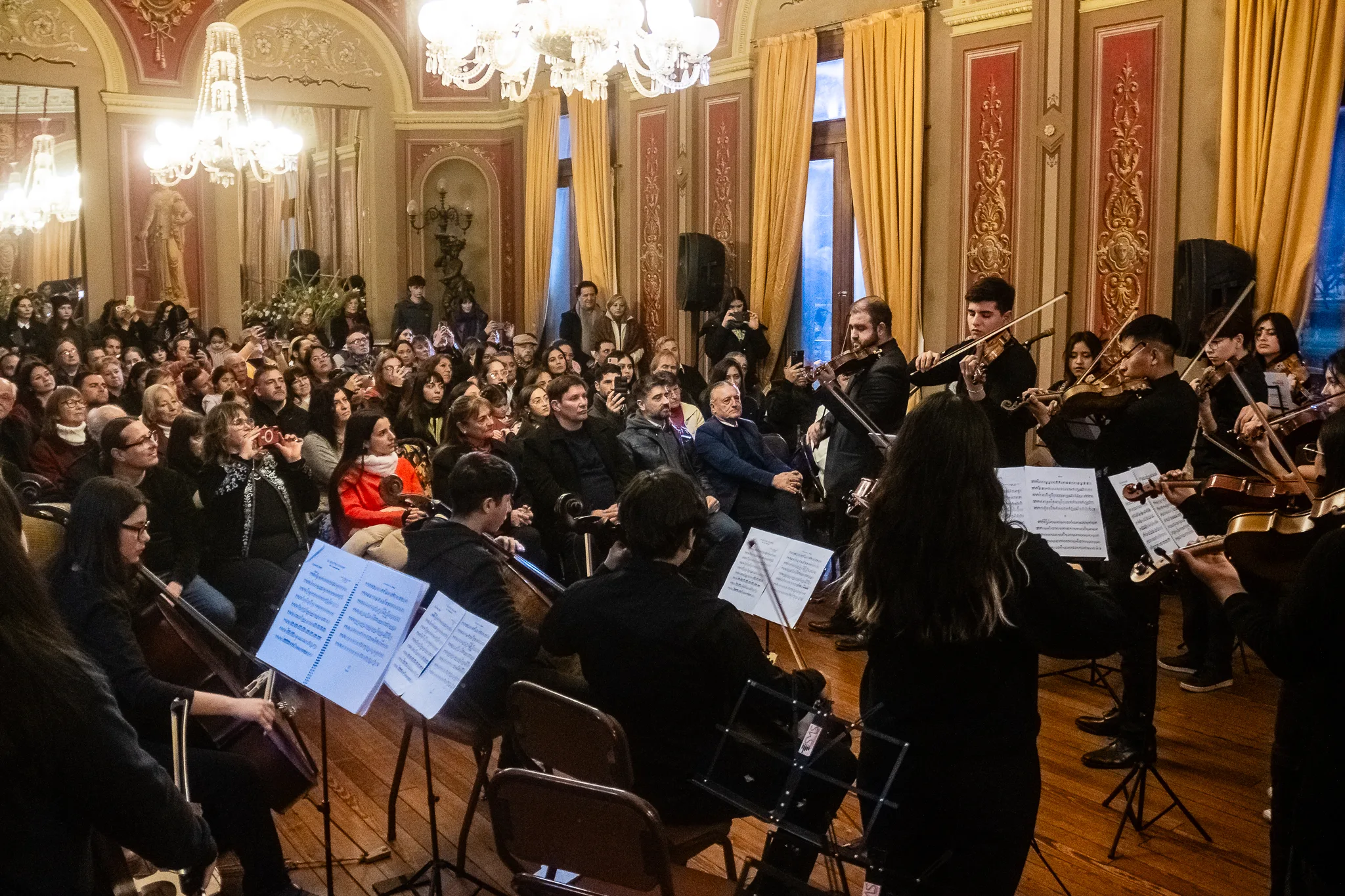 El Salón Rojo del Palacio Municipal lució repleto de público en una jornada especial debido al inicio de un nuevo ciclo musical denominado “Sinfónicos en el Rojo”, un evento que se desarrollará durante todos los meses de año y que contará con el apoyo de la Secretaría de Deportes y Cultura.