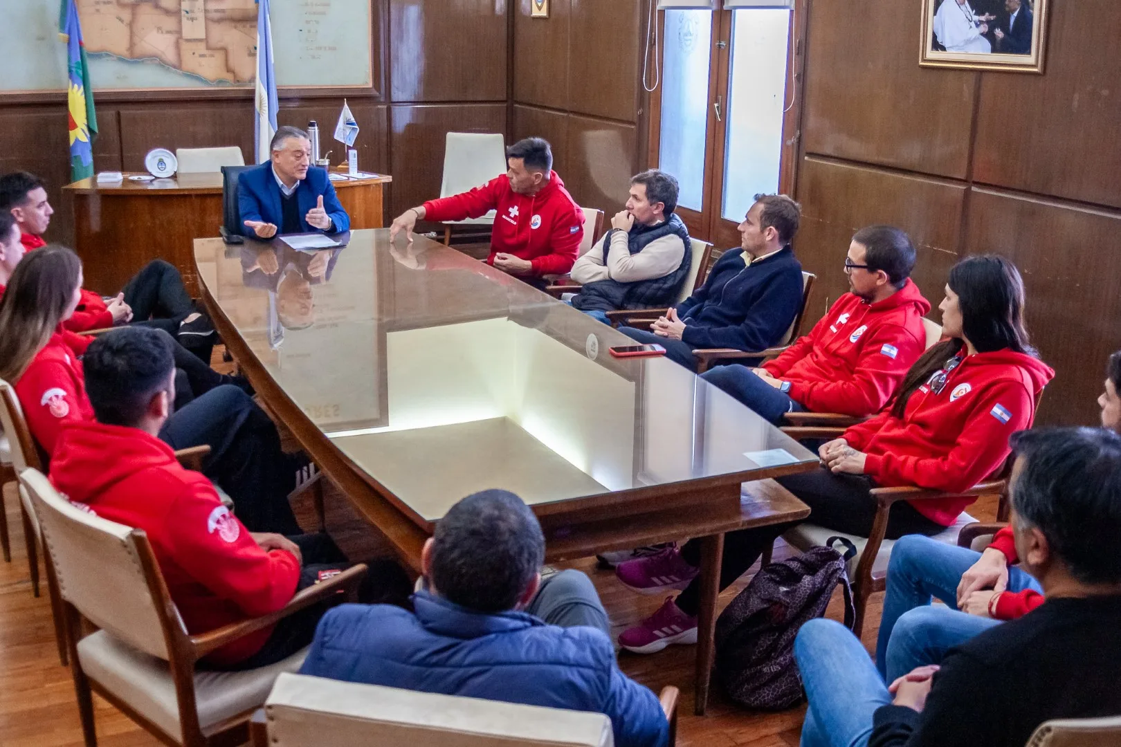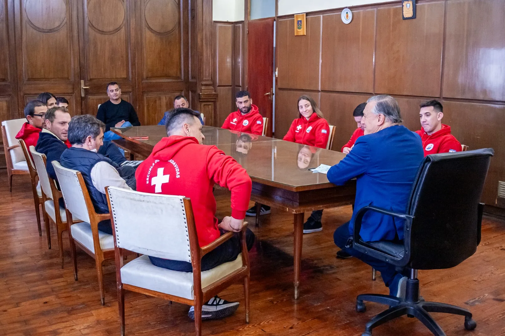 El intendente Alberto Gelené, acompañado por demás funcionarios municipales, recibió a estudiantes y directivo de la Escuela de Formación Profesional de Guardavidas y del Centro de Educación Física Nº6.