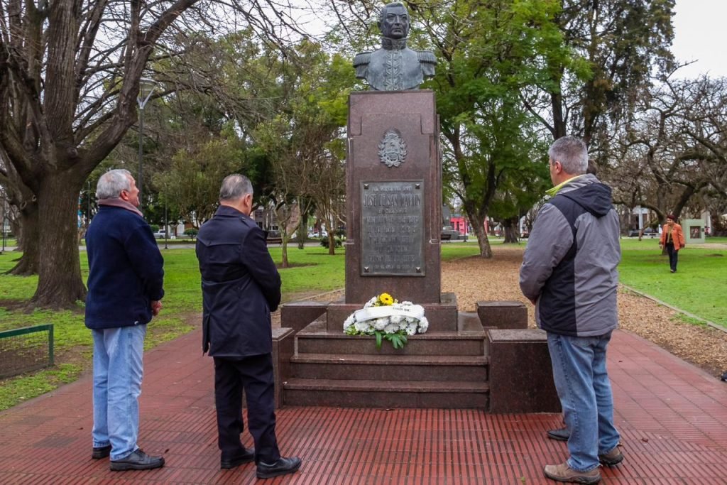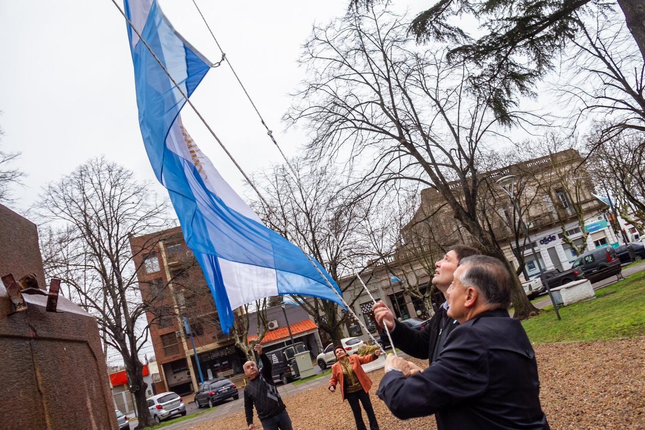 Luego de la apertura, el intendente Alberto Gelené y el presidente del Honorable Concejo Deliberante, Fabián Blanstein, acompañados por integrantes de la Asociación Sanmartiniana Florense, se dirigieron hacia Plaza Mitre a realizar el arrío de la Bandera Argentina a media asta en el mástil central y la posterior colocación de una ofrenda floral.