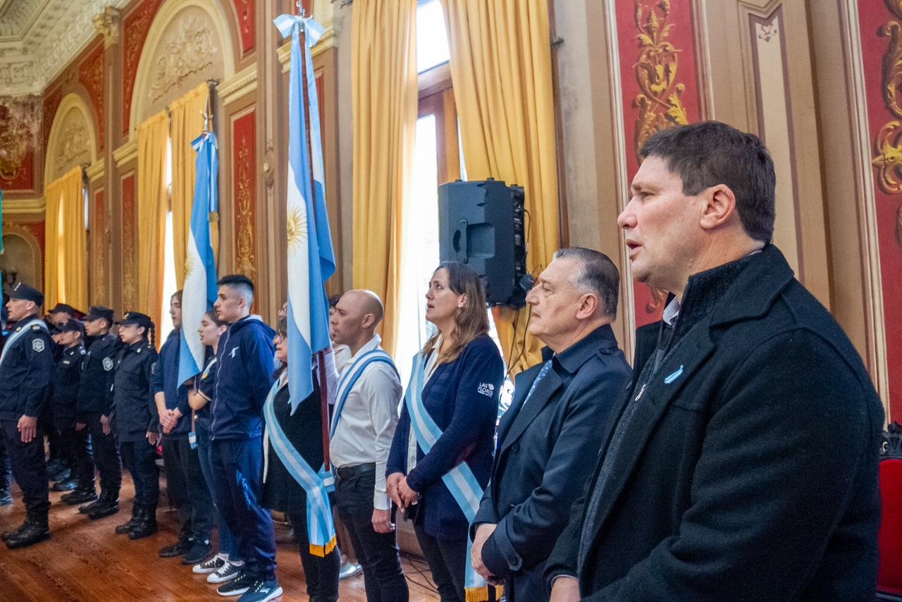 Las inclemencias climáticas no permitieron la realización de la conmemoración frente al busto que recuerda al Padre de la Patria y finalmente tuvo lugar en el Salón Rojo del Palacio Municipal.