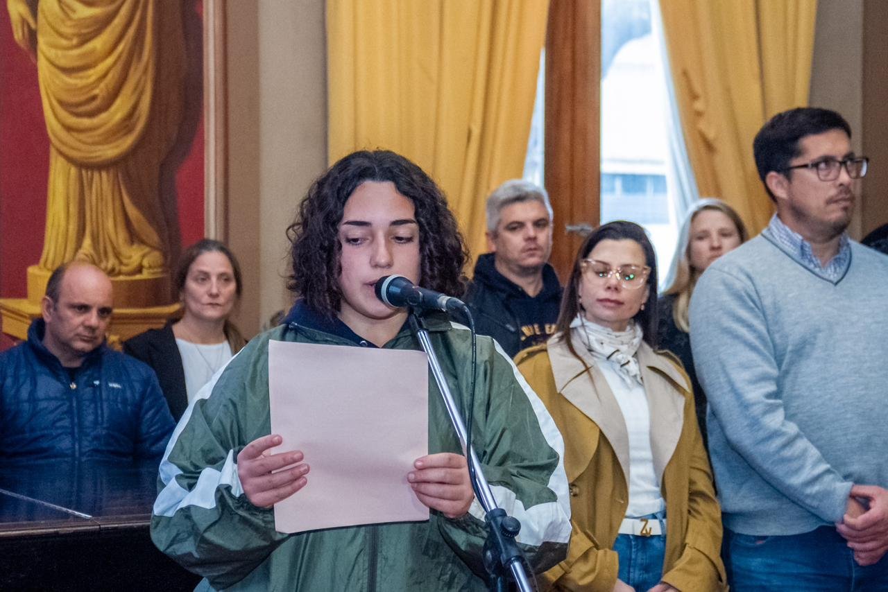En el momento de las palabras alusivas, compartieron un mensaje la alumna Dorella Rampoldi de 4to. año de la Escuela de Educación Agraria N° 1 y la concejala Vanesa Villalón, quienes hicieron un recorrido por la historia y vida del Libertador que, en sus gestas, ideó y contribuyó a la liberación e independencia de América.