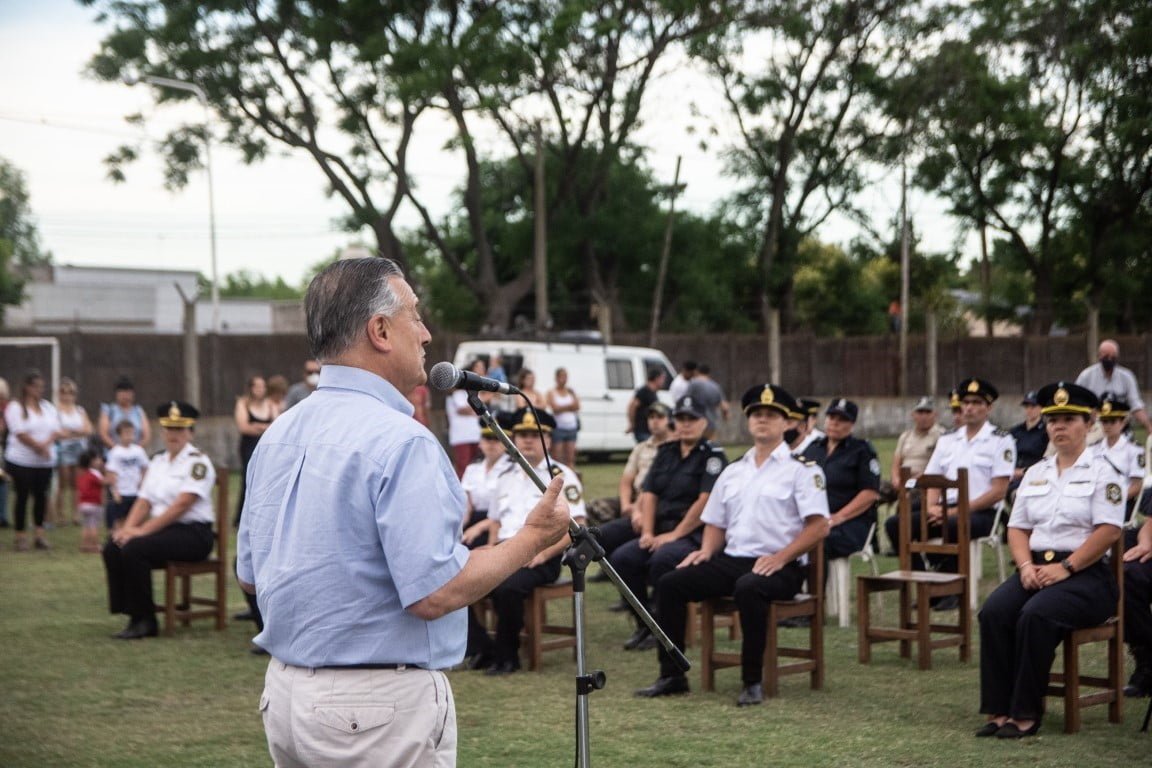 Luego de la presentación de las autoridades, el Comisario Inspector Sebastián Guillén, Jefe de Policía Comunal, agradeció a todo el cuerpo de agentes que integran las distintas fuerzas de seguridad local y los felicitó por el trabajo que año tras año llevan adelante, resaltando la responsabilidad y compromiso de cada uno con la institución policial y con la comunidad en general.