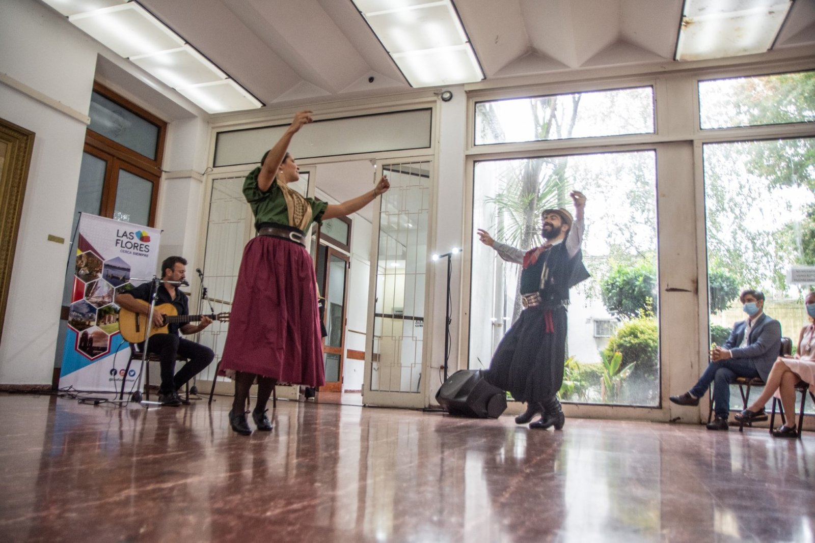 En la parte musical Fabián Villalón interpretó, en guitarra y voz, una milonga de su autoría llamada “Puerta del Sur” y luego “Huella del Carmen de Las Flores” de Lito Vidaurreta y Hugo Suarez acompañado en la danza por una pareja del Ballet Municipal, integrada por su profesor Jonatan Barrios y Macarena Correa.