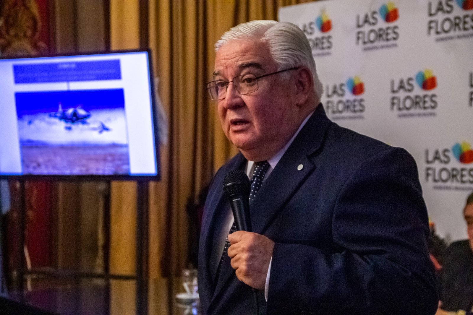 Vergara estuvo acompañado en su presentación por el Brigadier General retirado Mario Callejo, un piloto de avión héroe de la guerra del Atlántico Sur que combatió contra la poderosa flota inglesa.