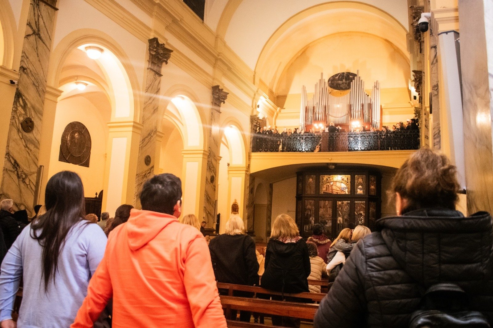 Los organistas Matías Málaga de Tandil y Marcos Peralta de Azul, ejecutaron piezas musicales reconocidas como Gloria, Ave María, Tollite Hostias, Signore, Aleluya, Observa al mundo.