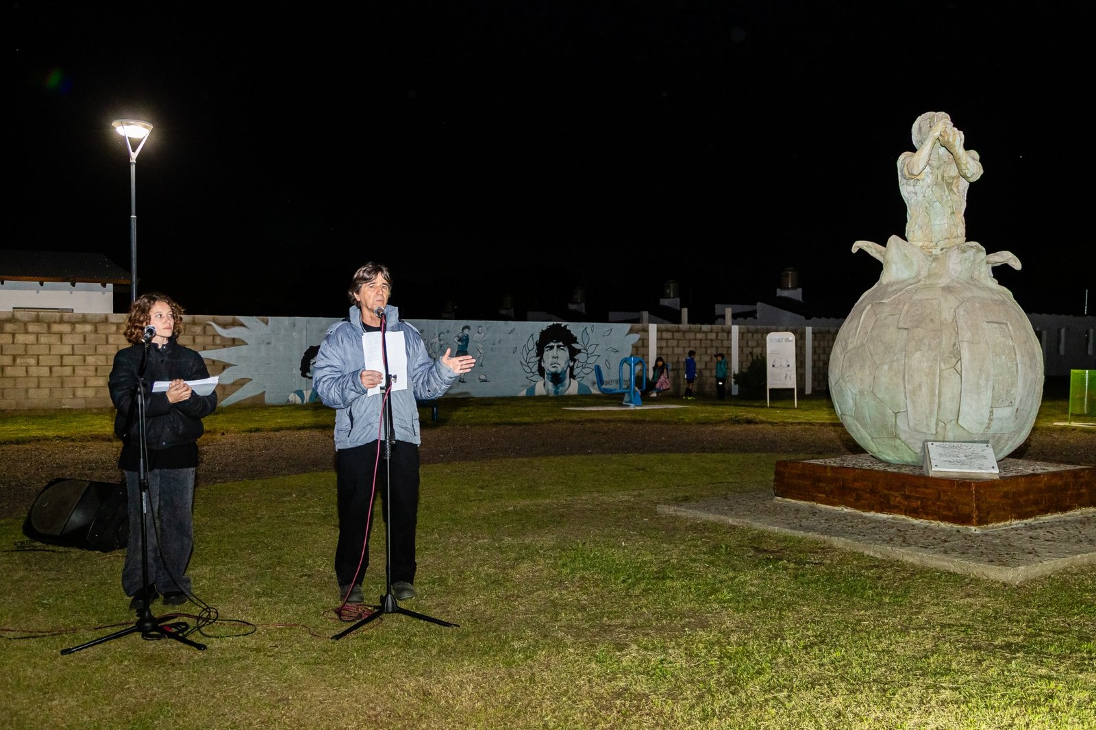 Con buena concurrencia de público, se celebró anoche en nuestra ciudad el cuarto aniversario de la Plazoleta Diego Armando Maradona y el tercer año del ya instituido Día del Futbolista y de la Futbolista de nuestra ciudad.