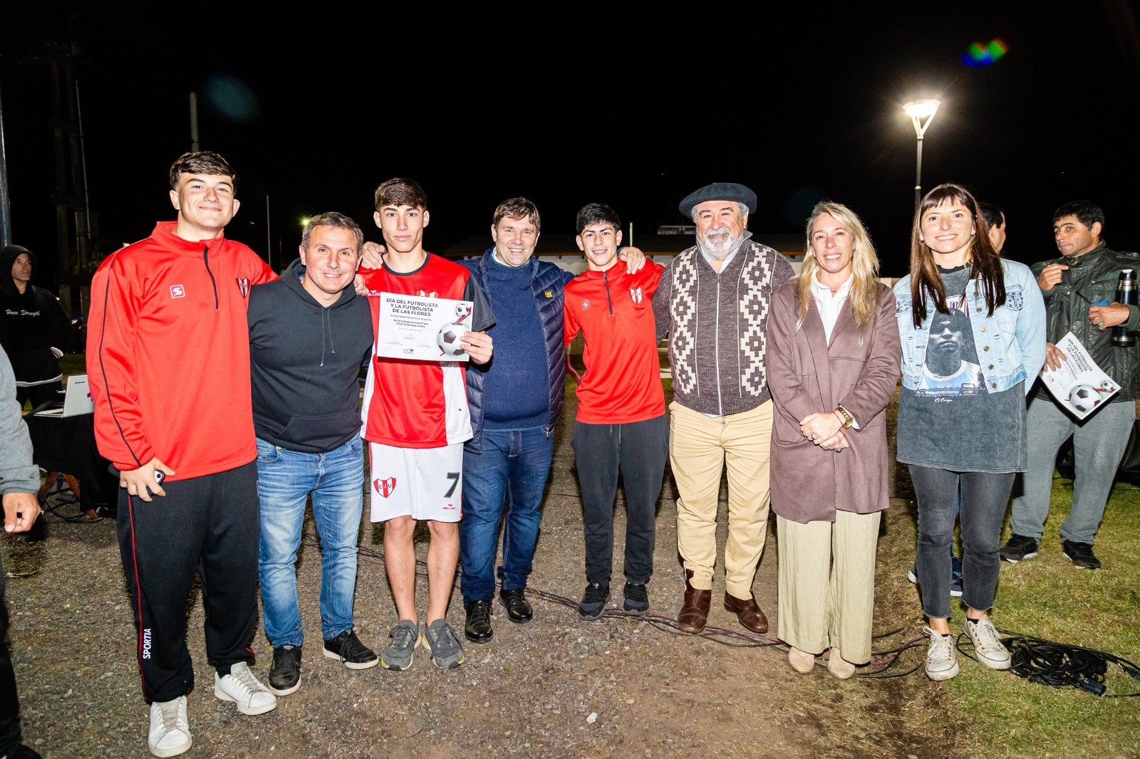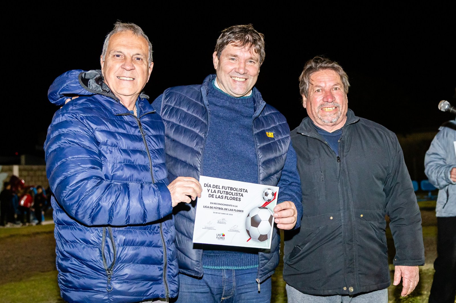Fueron distinguidos: el ex futbolista profesional Cesar Domingo “Mingo” Angelello, los dirigentes de Liga de Fútbol de Las Flores y los miembros de la agrupación “Al Diez Mundial”, una entidad que fue la impulsora de la construcción y posterior instalación del busto que representa la figura de Diego Maradona, emplazado hoy en la plazoleta que lleva su nombre ubicada en la intersección de las avenidas Manuel Venancio Paz y Alfredo Vidal.