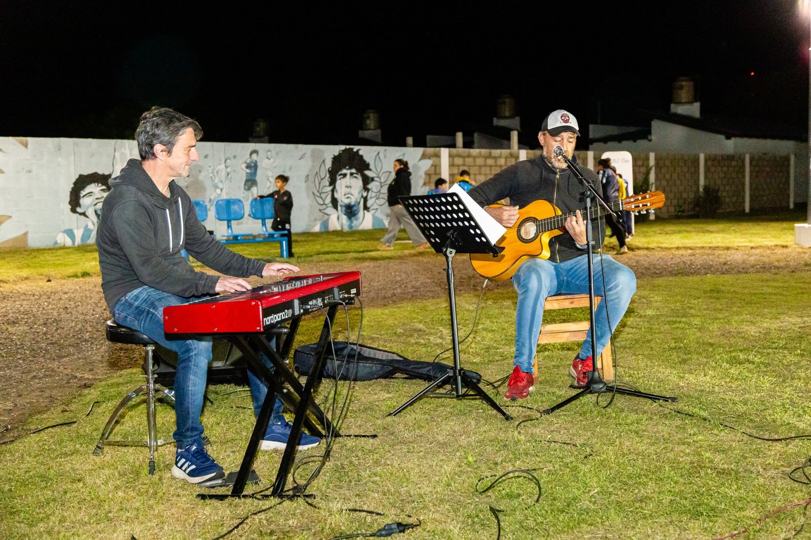 En el final del acto alusivo, que se destacó por la calidez y emotividad, el músico y cantante Venancio Delgado, junto a Marcelo Pilotto en el teclado, fueron los encargados de cerrar el evento con un hermoso tema del grupo “Las Pastillas del abuelo” que invocó la figura de quien fuera el capitán de la Selección Argentina en México 1986.