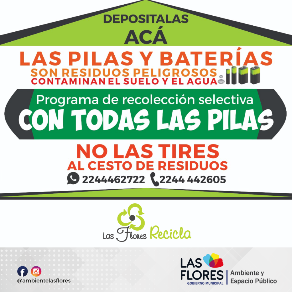 Desde la Subsecretaría de Ambiente Sustentable y Espacio Público y la Asociación “Revolución Sustentable”, informan que continúa la campaña “Con todas las pilas”, hay bidones en diferentes comercios de la ciudad para que los vecinos puedan acercar las pilas y baterías usadas y/o en desuso.