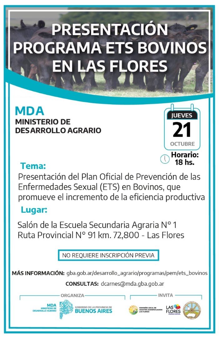 Las charlas de este jueves, que se darán de forma presencial y no requieren de inscripción previa, se llevarán a cabo en el Salón de la Escuela Secundaria Agraria N° 1, ubicada en Ruta Provincial N° 91, km 72,800 de Las Flores.