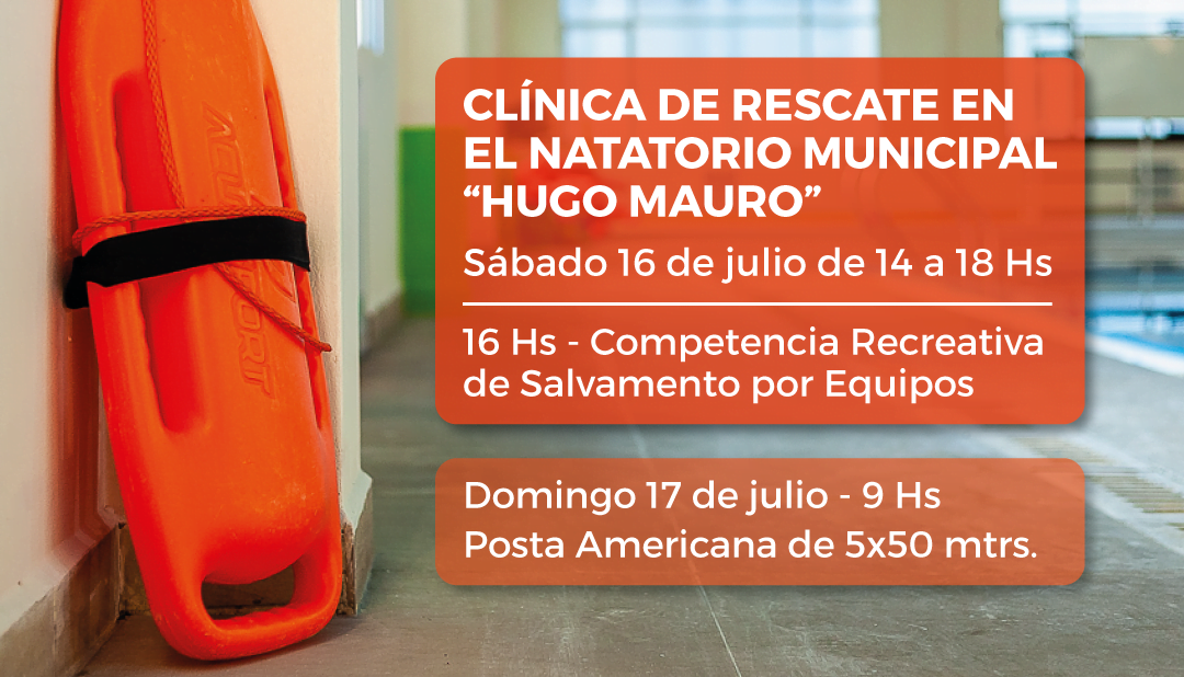 Mañana, en el horario de 14 a 18 horas, en la pileta climatizada Municipal “Hugo Mauro” se llevará a cabo una clínica de rescate con tablas y participación de rescate acuático deportivo a cargo de Alejandro Fontana, con la organización de Eduardo Bodnar.