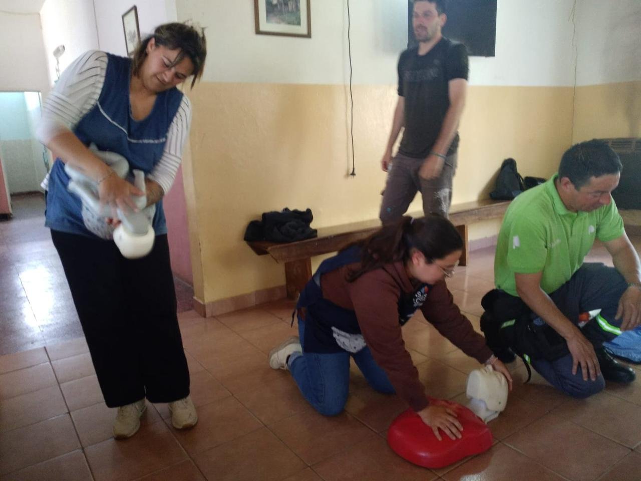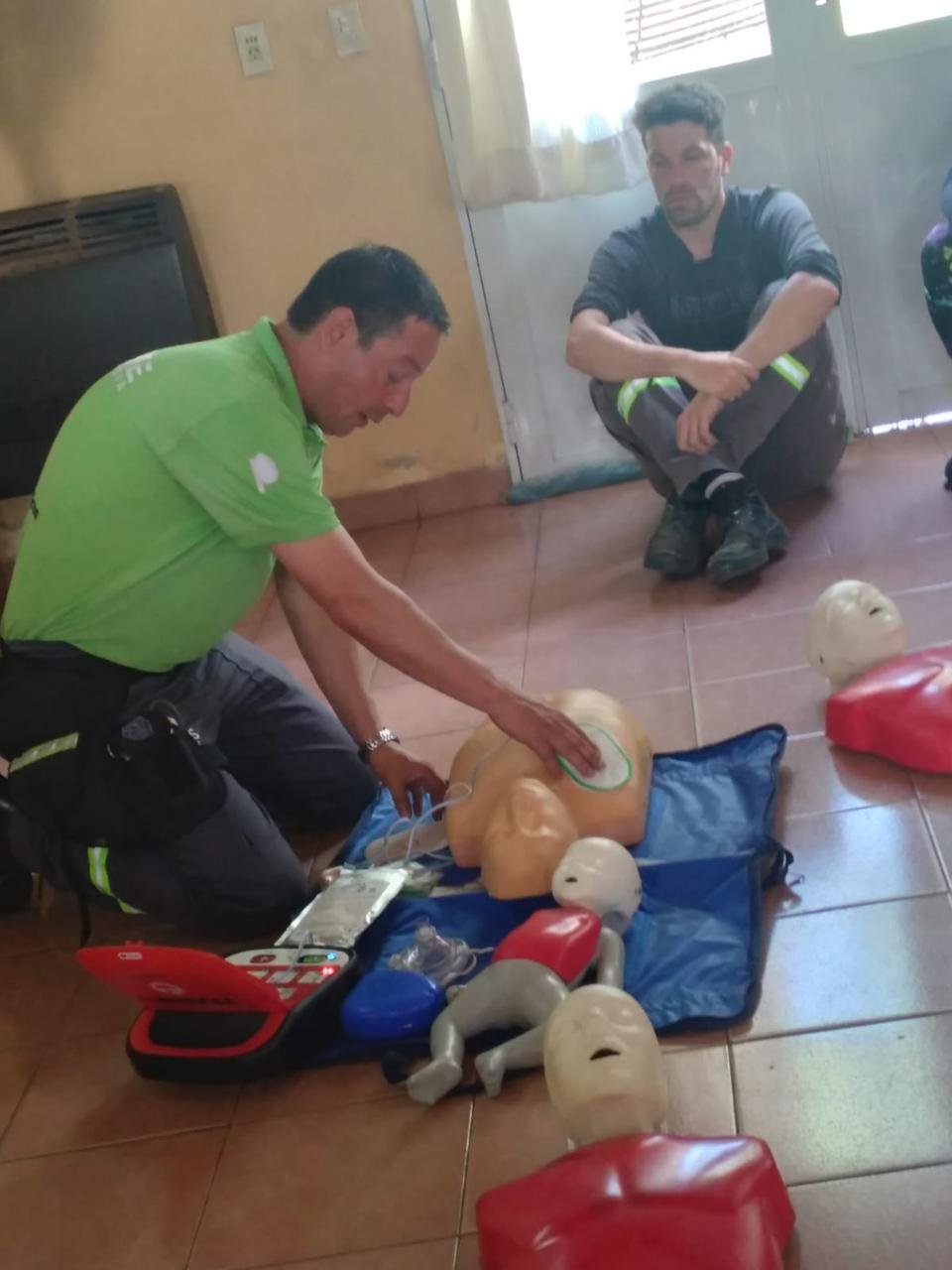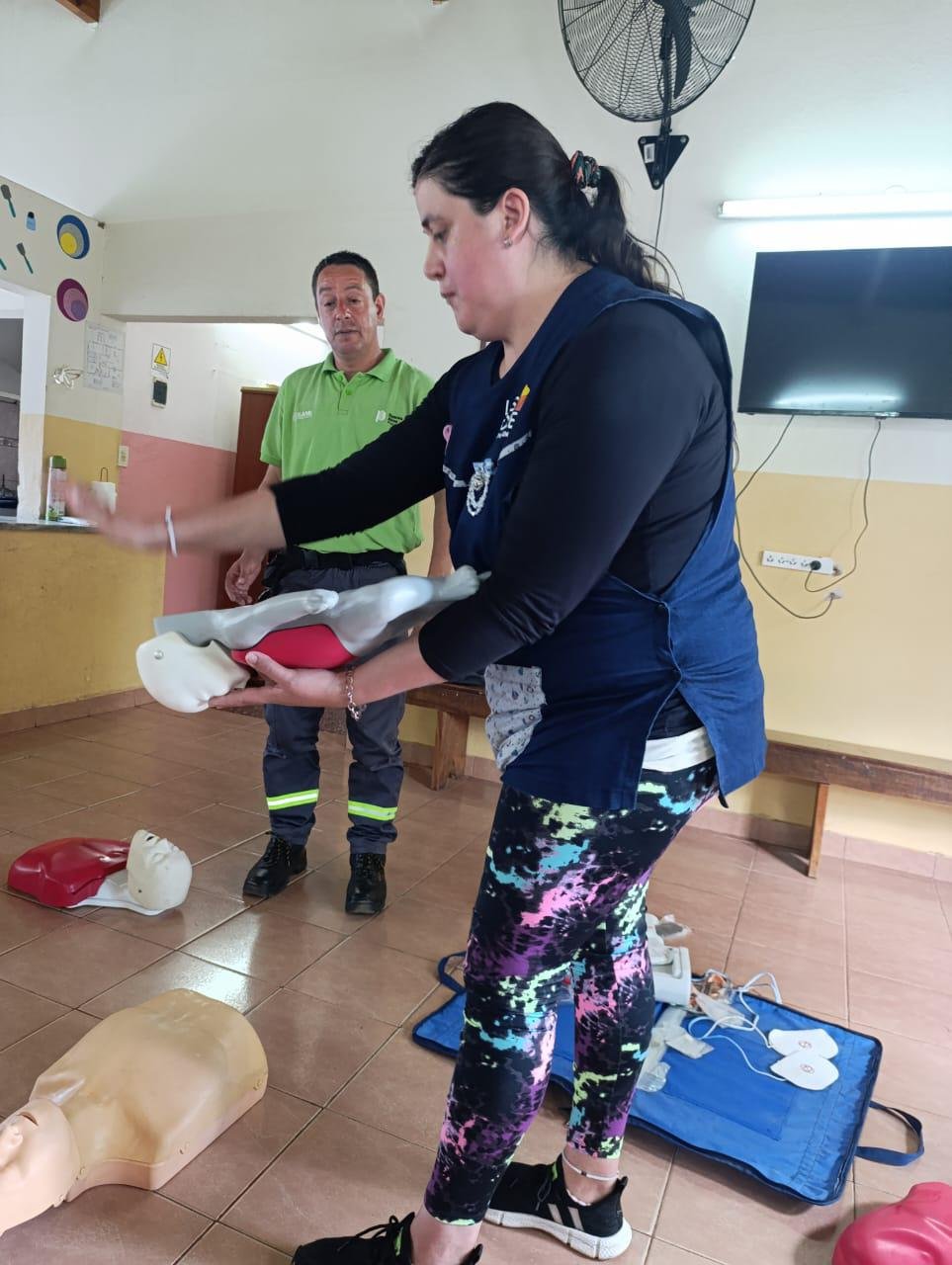 En marco de esta colocación, desde la Secretaría de Salud Pública se estuvieron realizando capacitaciones de RCP, maniobra de Heimlich, primeros auxilios y utilización de DEA a cargo de Nicolás Arias, instructor nacional de RCP, que instruyó en primera instancia al personal del Centro Comunitario y Centro de Atención Primaria de Salud, como así también a docentes, directivos y alumnos de la Escuela Primaria N°4 del Barrio.