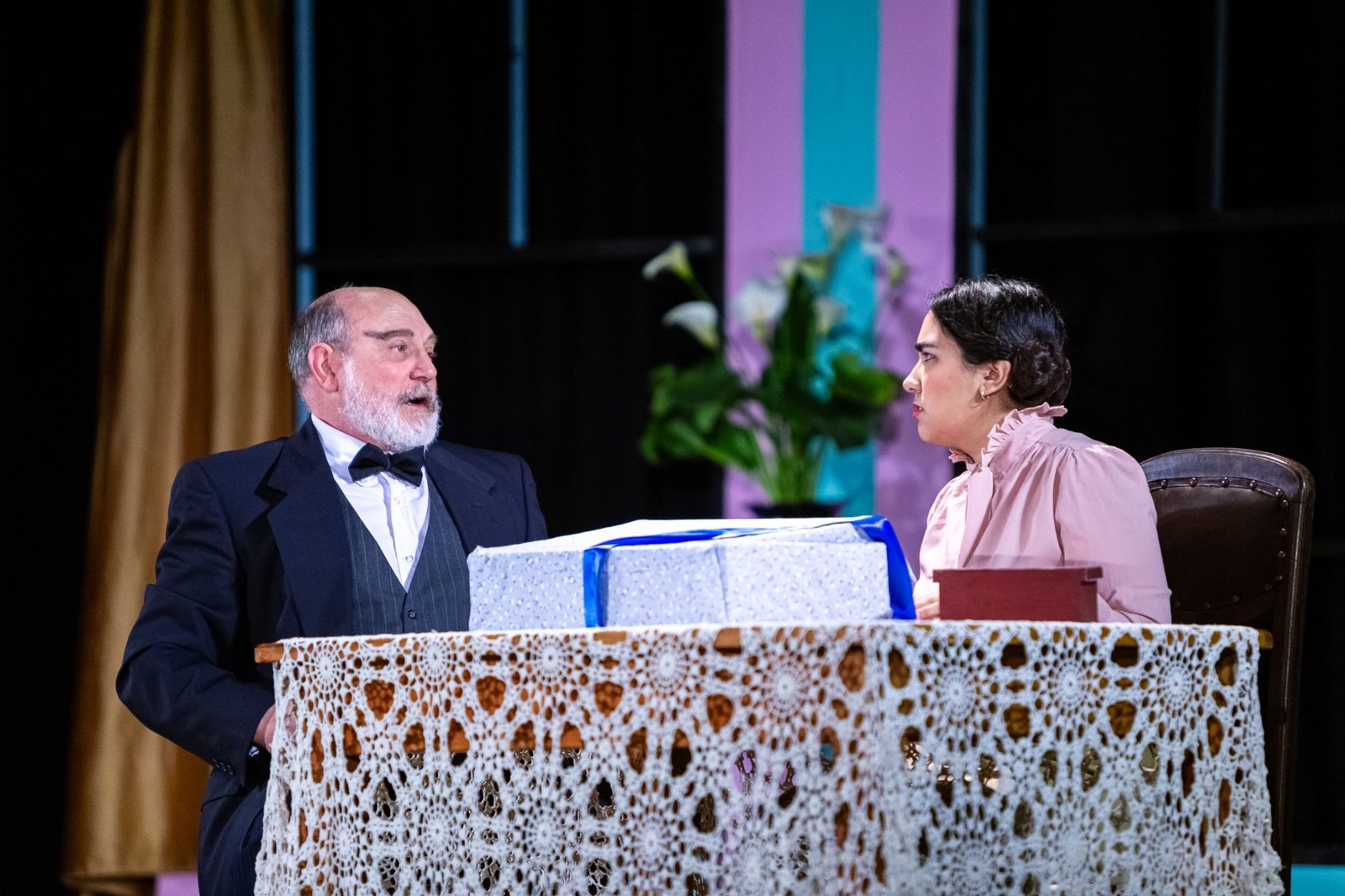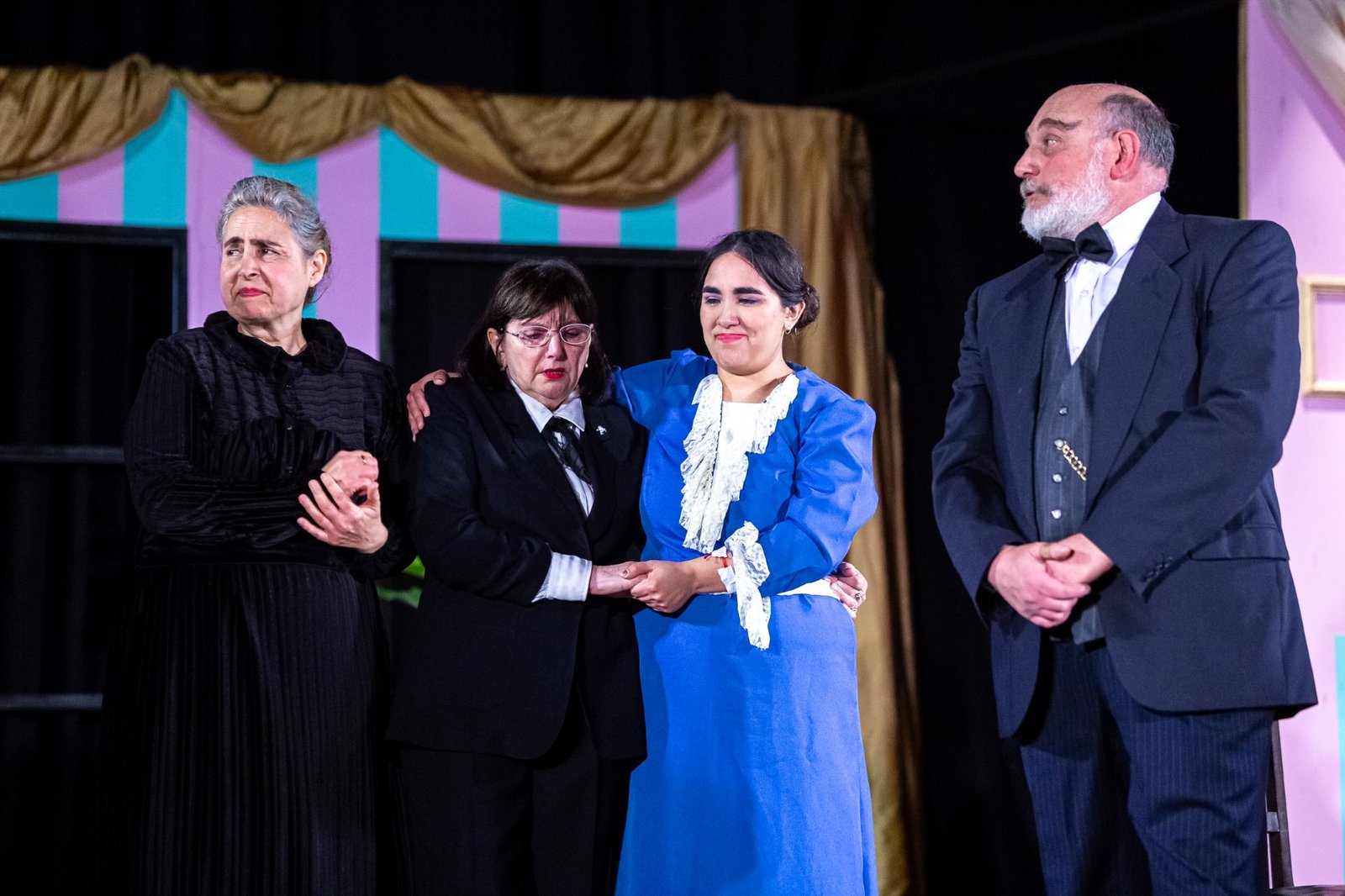 Soberbia actuación de Marcela Patronelli, como la madre viuda de tres hijas, de una familia que, en la búsqueda de mantener las apariencias, generó todo tipo de acciones que fueron muy bien representadas por las y los protagonistas de un espectáculo que cautivó al público que aplaudió y ovacionó de pie a los actores y actrices.