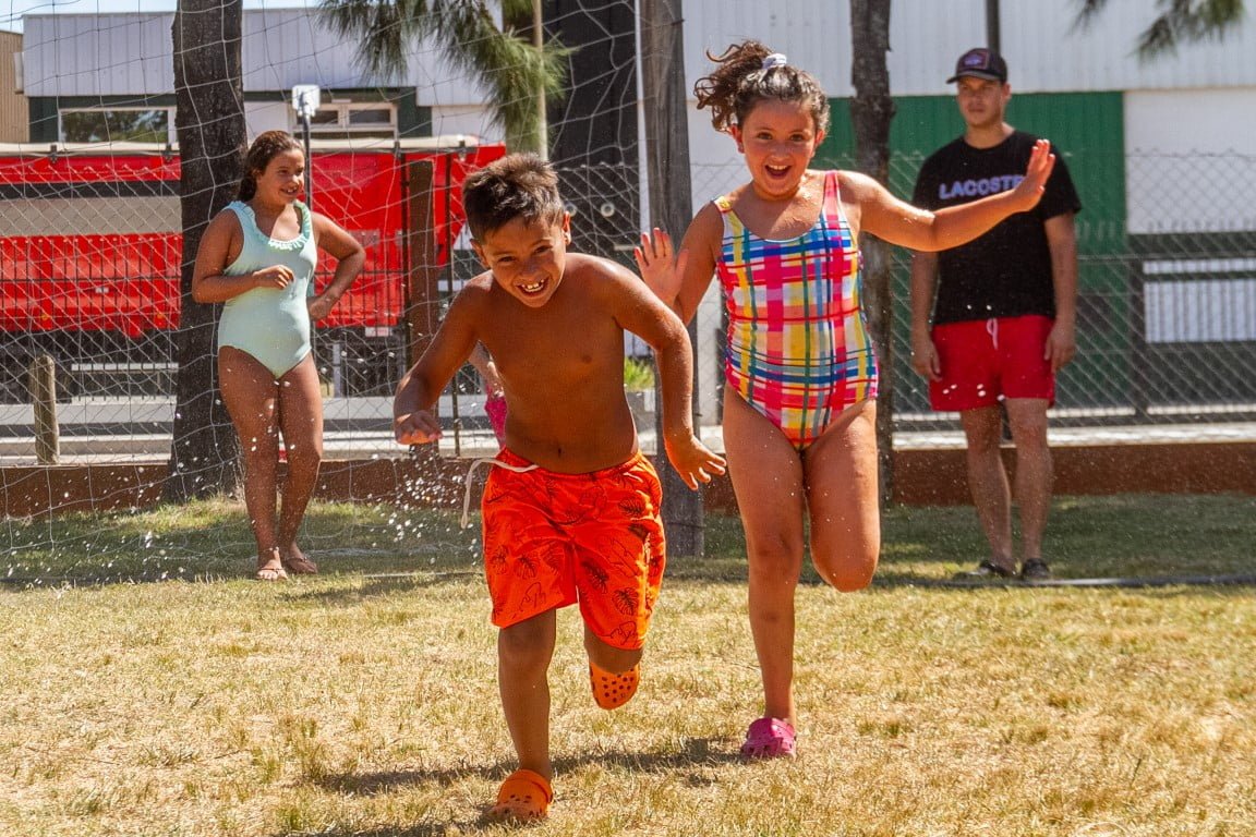 Esta semana la actividad se concentró en las piletas Faro 35 y Los Pinos, donde personal capacitado de los mencionados espacios municipales desarrollan un atractivo y dinámico plan de tareas recreativas y deportivas, donde los chicos aprovechan al máximo el esparcimiento al aire libre, prevaleciendo el compañerismo y la amistad por sobre todas las cosas, teniendo en cuenta las normativas epidemiológicas vigentes.