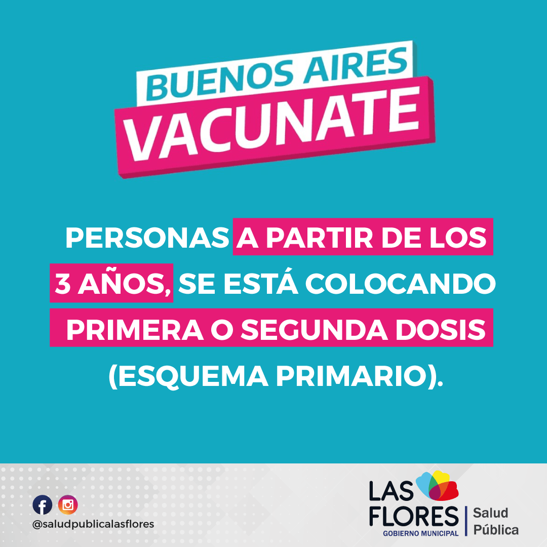 - Personas a partir de los 3 años: se están aplicando primeras o segundas dosis (esquema primario)