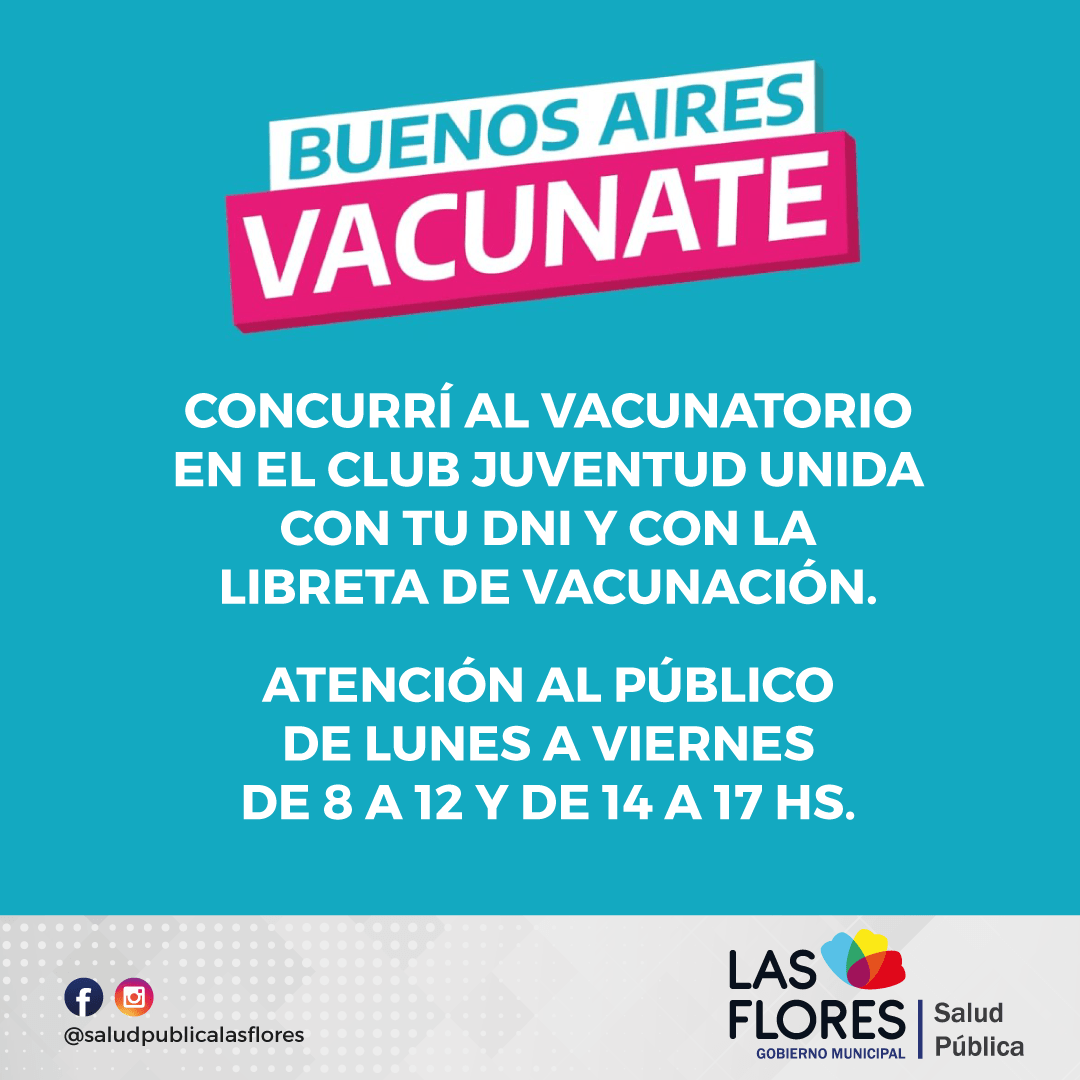 Los ciudadanos deben concurrir al vacunatorio sito en el Club Juventud Unida con el DNI y el carnet de vacunación.