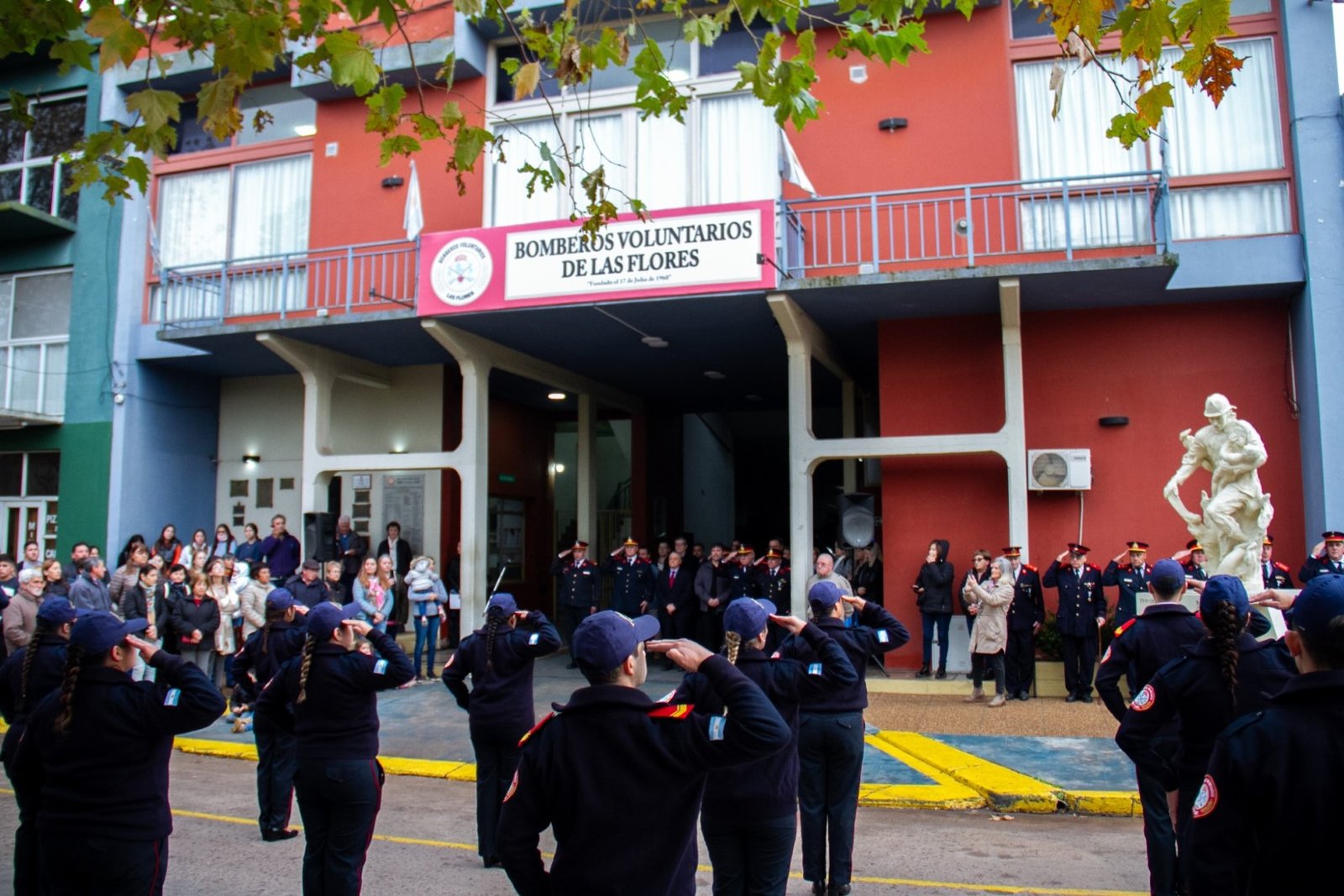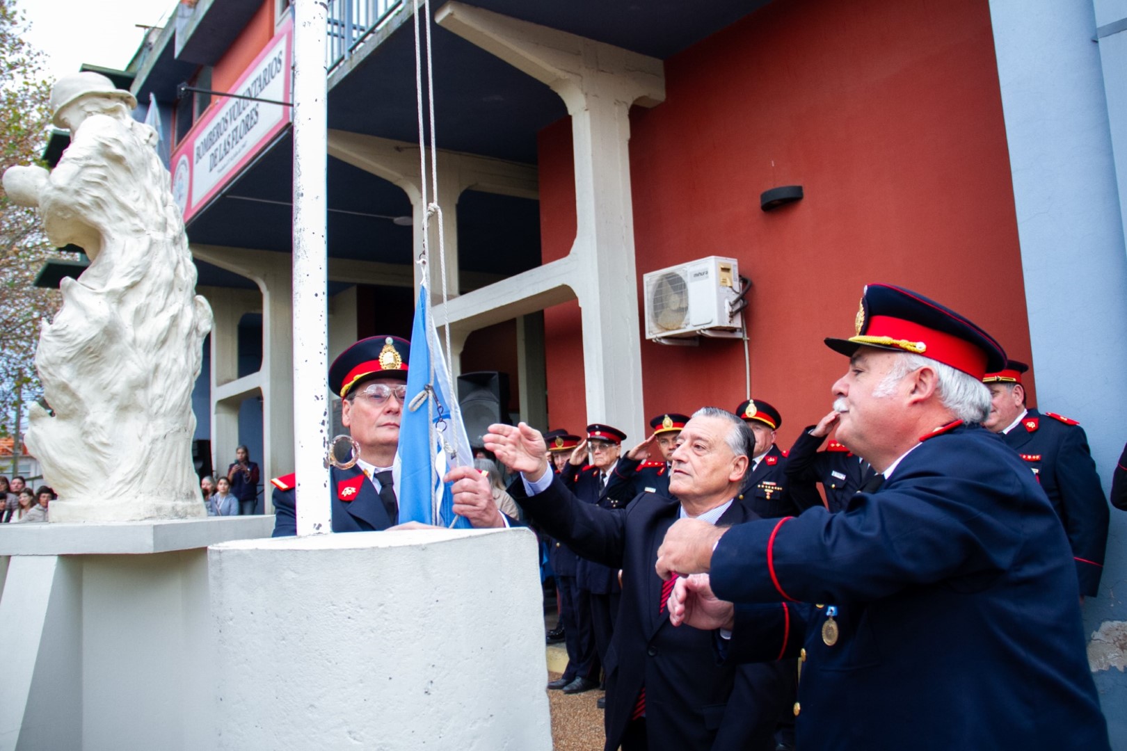 Se homenajeó a quienes ya no están con un minuto de silencio y se colocó una ofrenda floral en el monumento al Bombero.