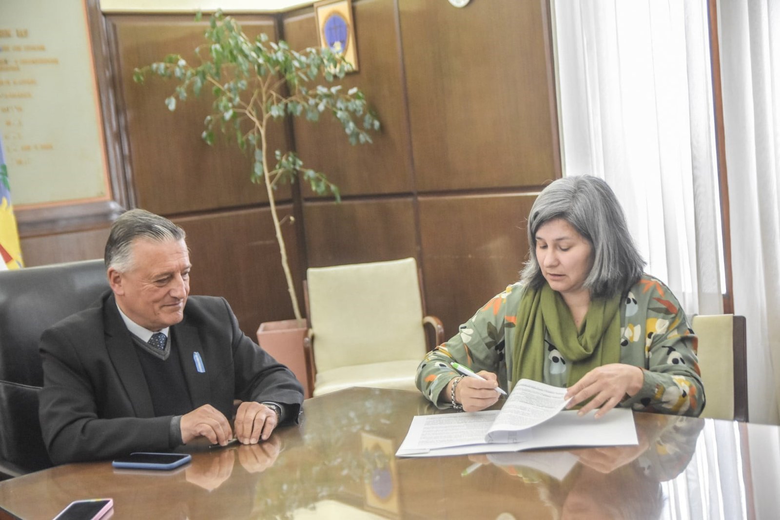 Luego se realizó la firma de un crédito del fondo provincial “Provincia en Marcha”, con una productora de la Cooperativa Ovina El vellón de Oro. Dicho crédito será destinado a la prefinanciación de la faena de corderos del producto “Corderos de Las Flores”, de dicha Cooperativa. También conversaron del proyecto de la sede social para la Cooperativa en Pardo y la idea de realizar ahí mismo el Ciclo 2.