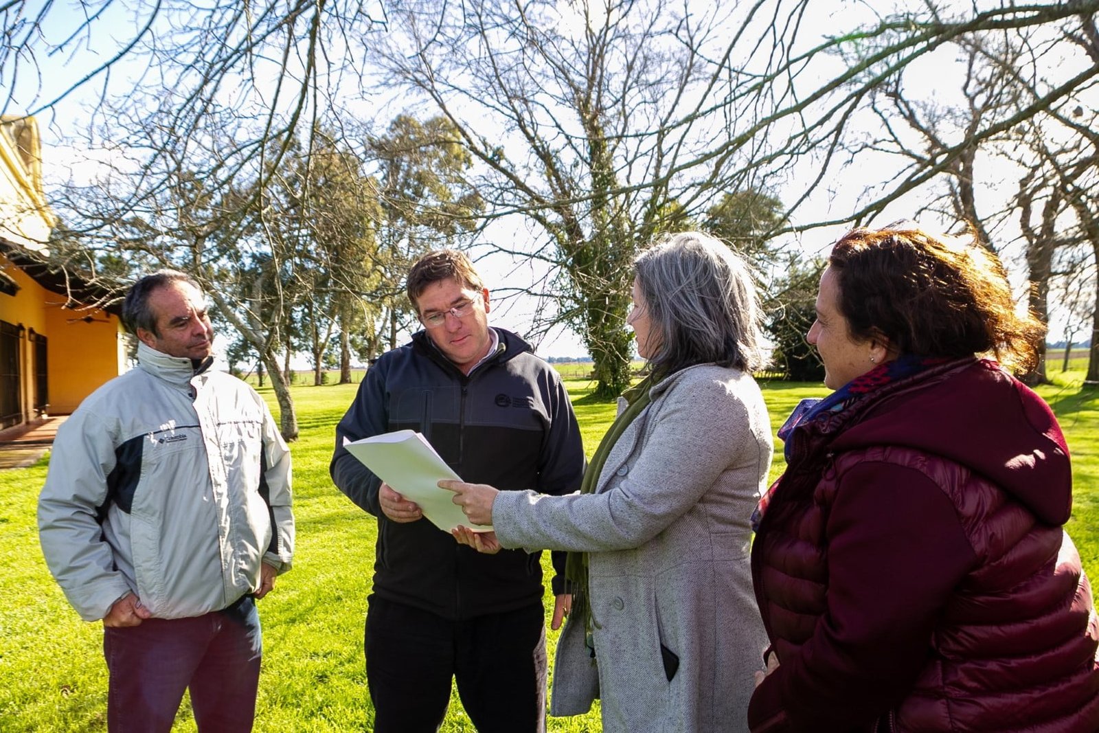 En la reunión también estuvieron presentes el asesor en Políticas Públicas, Emil Gelené; Lisandro Paggi, delegado municipal de Pardo; el coordinador de Desarrollo Agrario, Daniel Testani, integrante de la dirección de Asuntos Agropecuarios; y productores y productoras rurales del Partido; entre otros.
