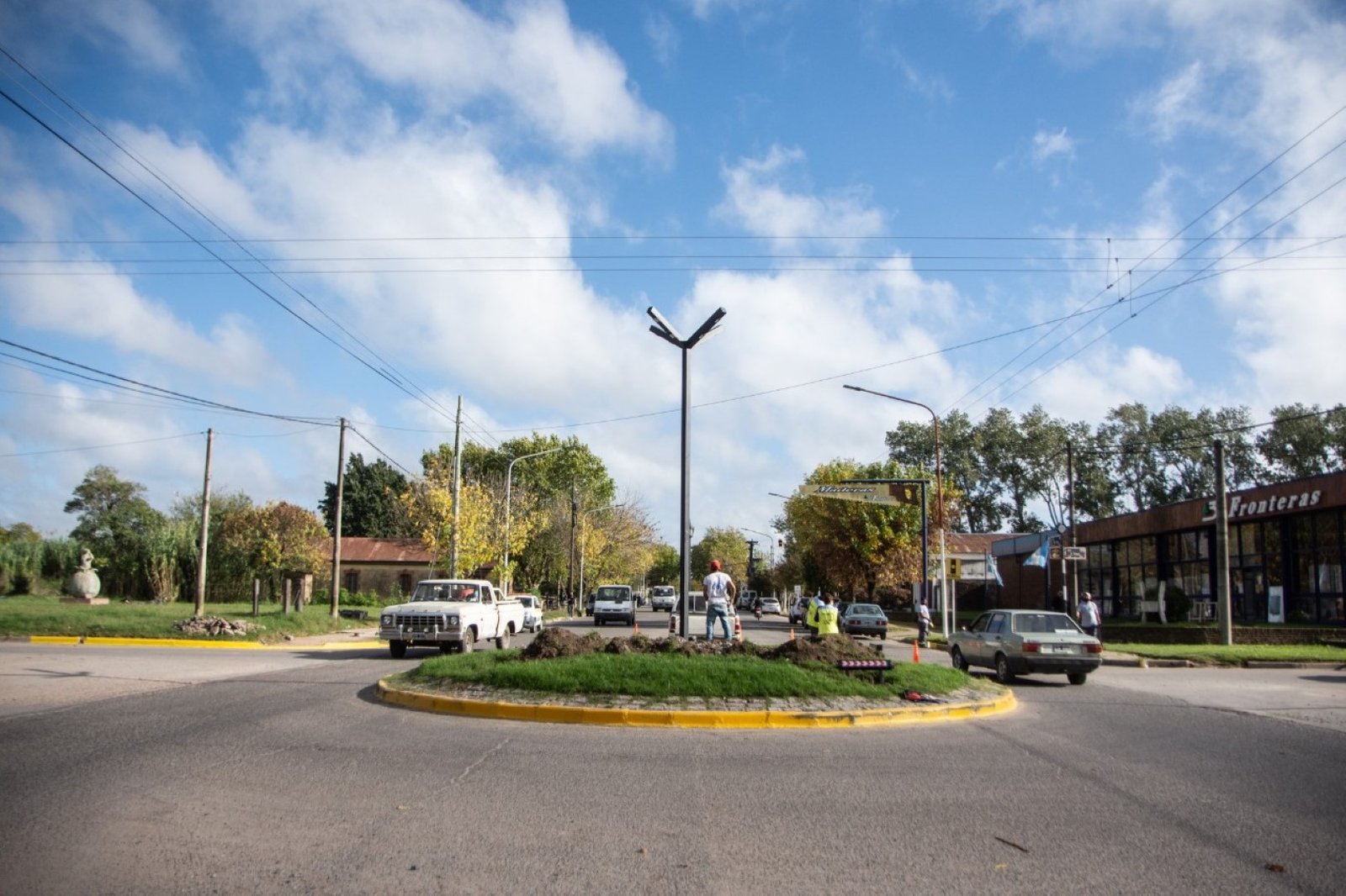 La Dirección de Comunicación Visual junto a la Secretaría de Planeamiento, Obras y Servicios Públicos se encuentran trabajando en el reacondicionamiento de la rotonda ubicada en Av. Manuel V. Paz y Av. Vidal, realizando el embellecimiento, demarcación e iluminación por led.