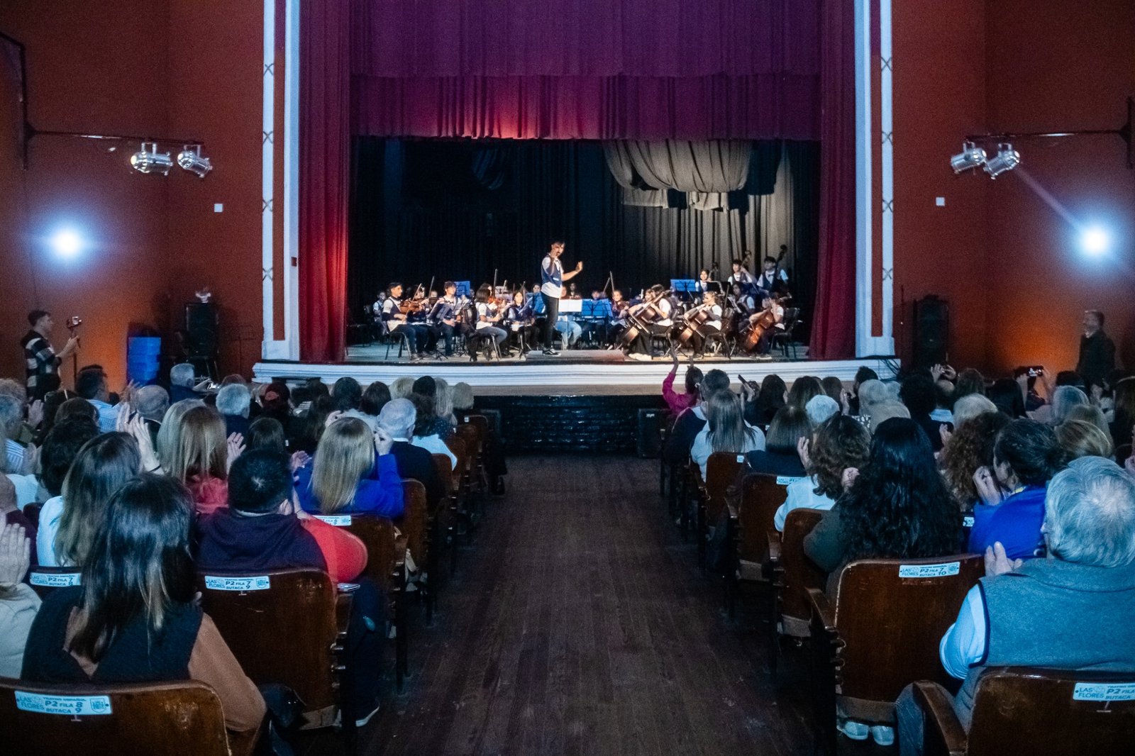 El sábado por la noche, la histórica sala de la avenida Carmen fue anfitriona de una excelente jornada musical que tuvo como número central la presencia de la Orquesta Sinfónica Juvenil de Florencio Varela que ofreció un concierto que terminó envuelto en los aplausos de la masiva concurrencia.