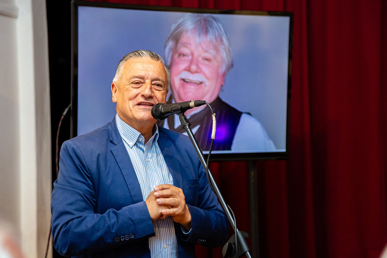 Luego, Flavio Iacomini dio lectura a una reseña de vida del “Gato”, desde su Carhué natal, su carrera como Veterinario, su llegada a Las Flores; en la docencia, en la función pública y política; su paso por destacados escenarios de todo el país, canales de televisión y toda su trascendencia a lo largo de la vida.