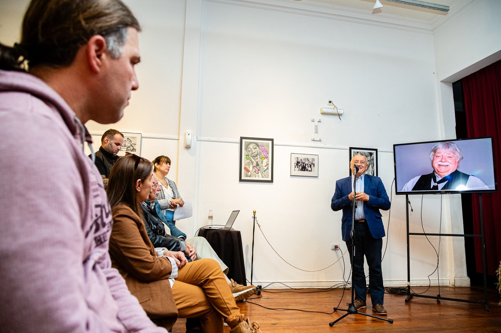 Luego, Flavio Iacomini dio lectura a una reseña de vida del “Gato”, desde su Carhué natal, su carrera como Veterinario, su llegada a Las Flores; en la docencia, en la función pública y política; su paso por destacados escenarios de todo el país, canales de televisión y toda su trascendencia a lo largo de la vida.