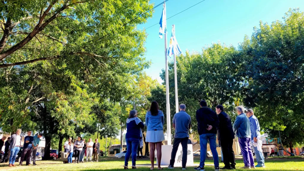 Luego en la Plazoleta del Barrio “Arturo Illia” se izaron las Banderas Argentina y de Malvinas y se colocó una ofrenda floral en el Monumento a la Paz en homenaje a los que no están.