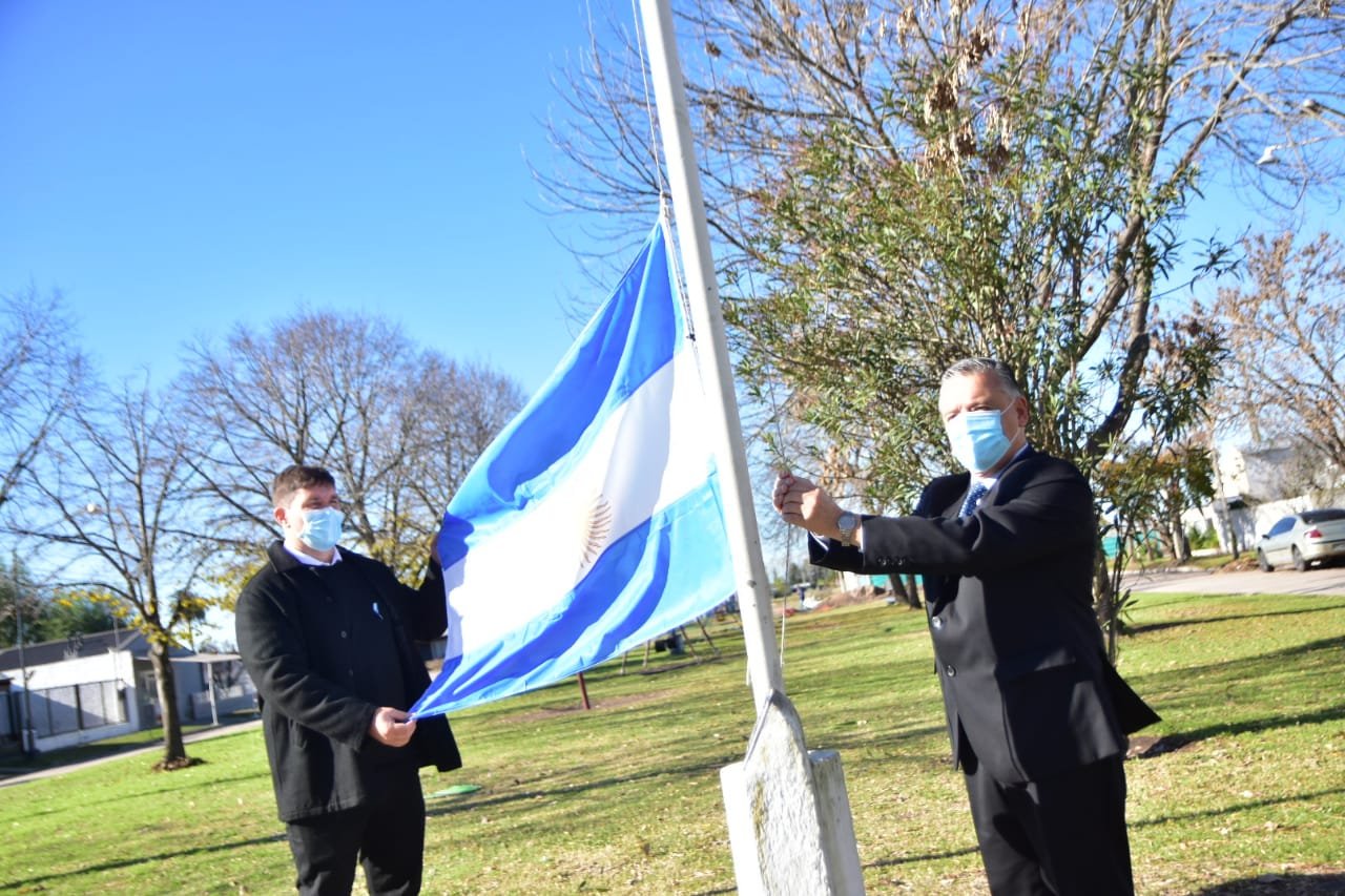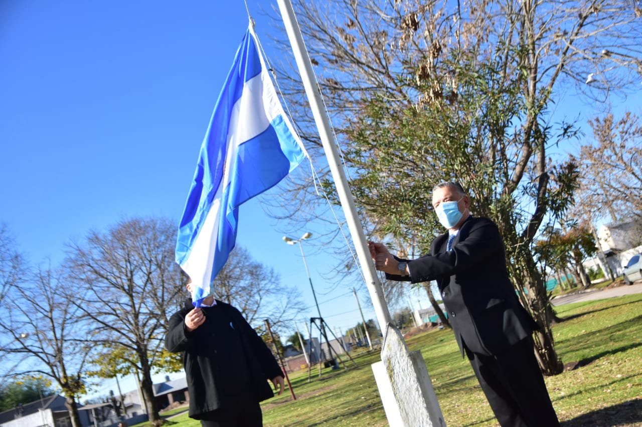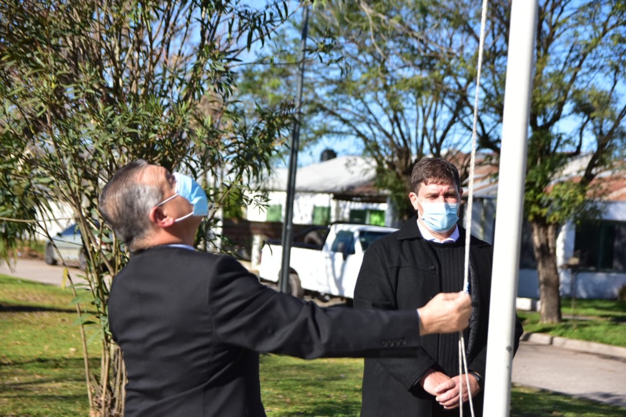 En el marco del acotado acto que se llevó a cabo hoy por el 25 de Mayo, día de la patria, el intendente, acompañado del Presidente del H.C.D, Prof. Fabián Blanstein aprovechó para brindar unas palabras alusivas desde la Plazoleta del Barrio 25 de Mayo, donde se izó la Bandera Nacional, como así también antes lo habían hecho en la Plaza Mitre, conmemorando un día muy especial, un nuevo aniversario de la Revolución de Mayo de 1810.