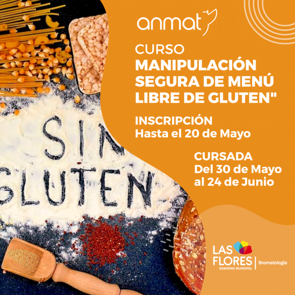 La Dirección de Bromatología y Cuidado Animal informa a la población en general que, en el mes de la celiaquía, la Administración Nacional de Medicamentos, Alimentos y Tecnología Médica (ANMAT) lanza el curso “Manipulación segura de Menú libre de gluten”.