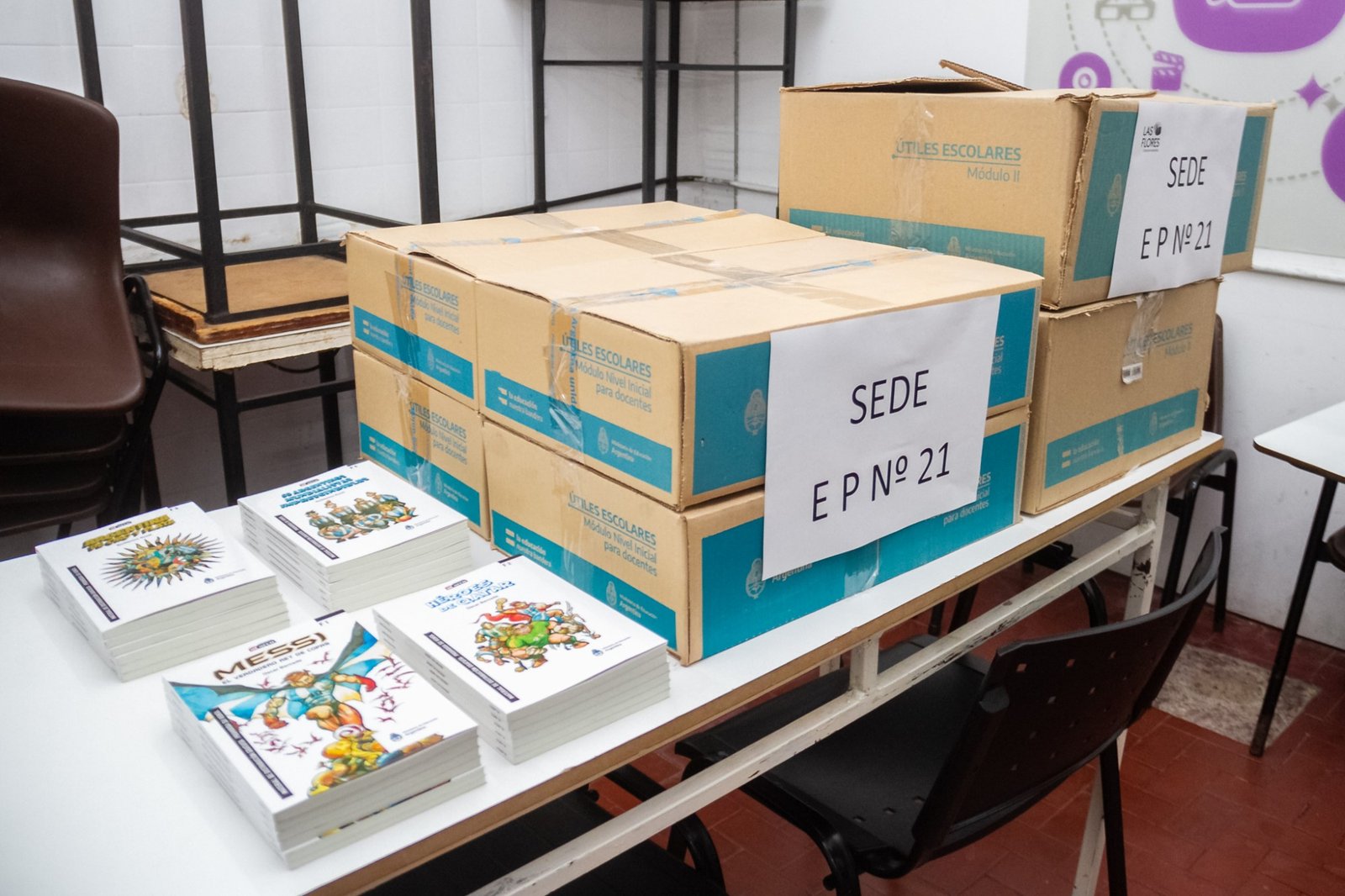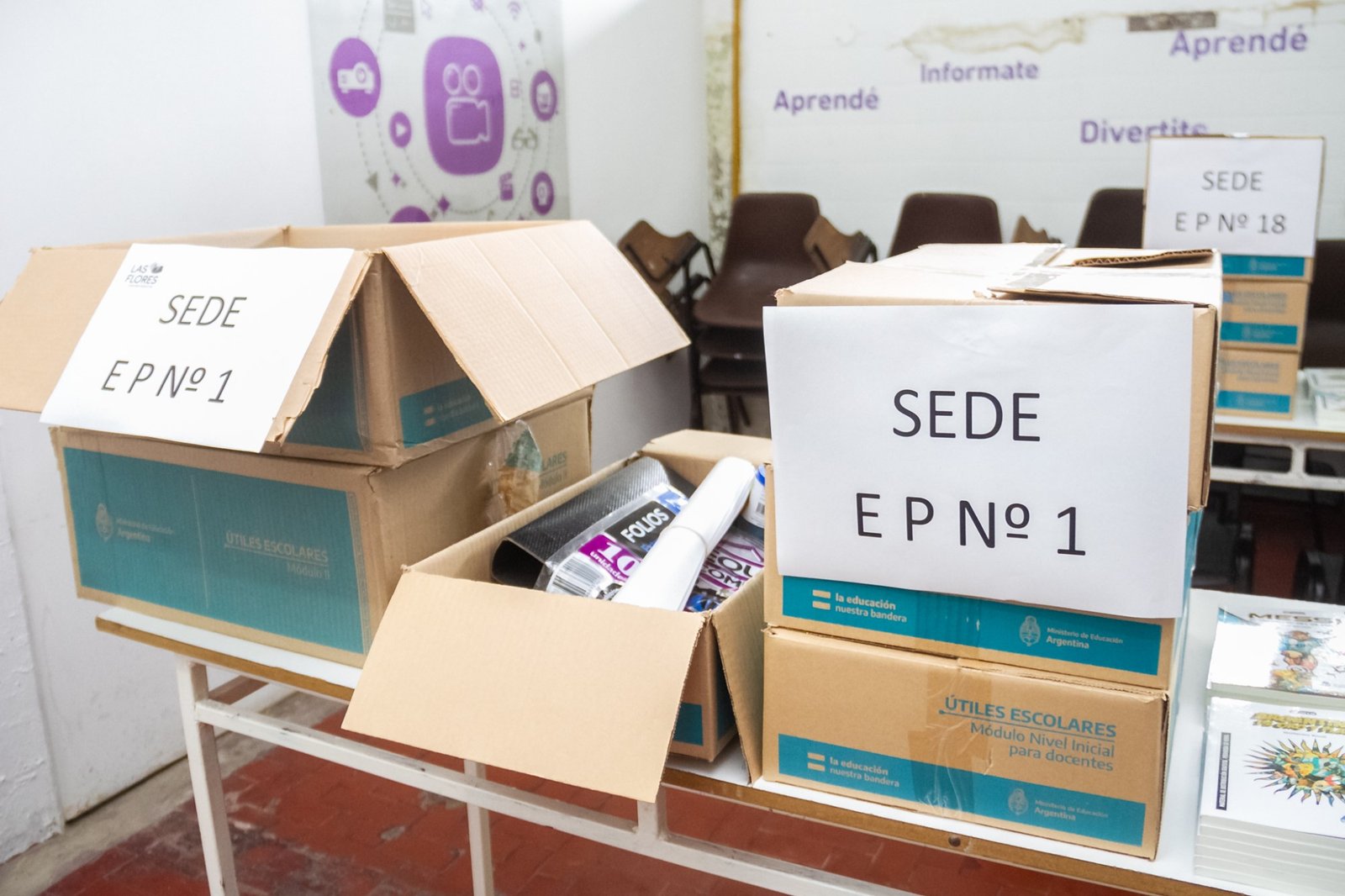 Desde la Jefatura Distrital se planteó la inquietud de disponer de los materiales mencionados y posteriormente fueron otorgados por la Municipalidad de Las Flores, a través de la Secretaría de Educación, a la coordinadora del Programa, profesora Stefanía Pairola.