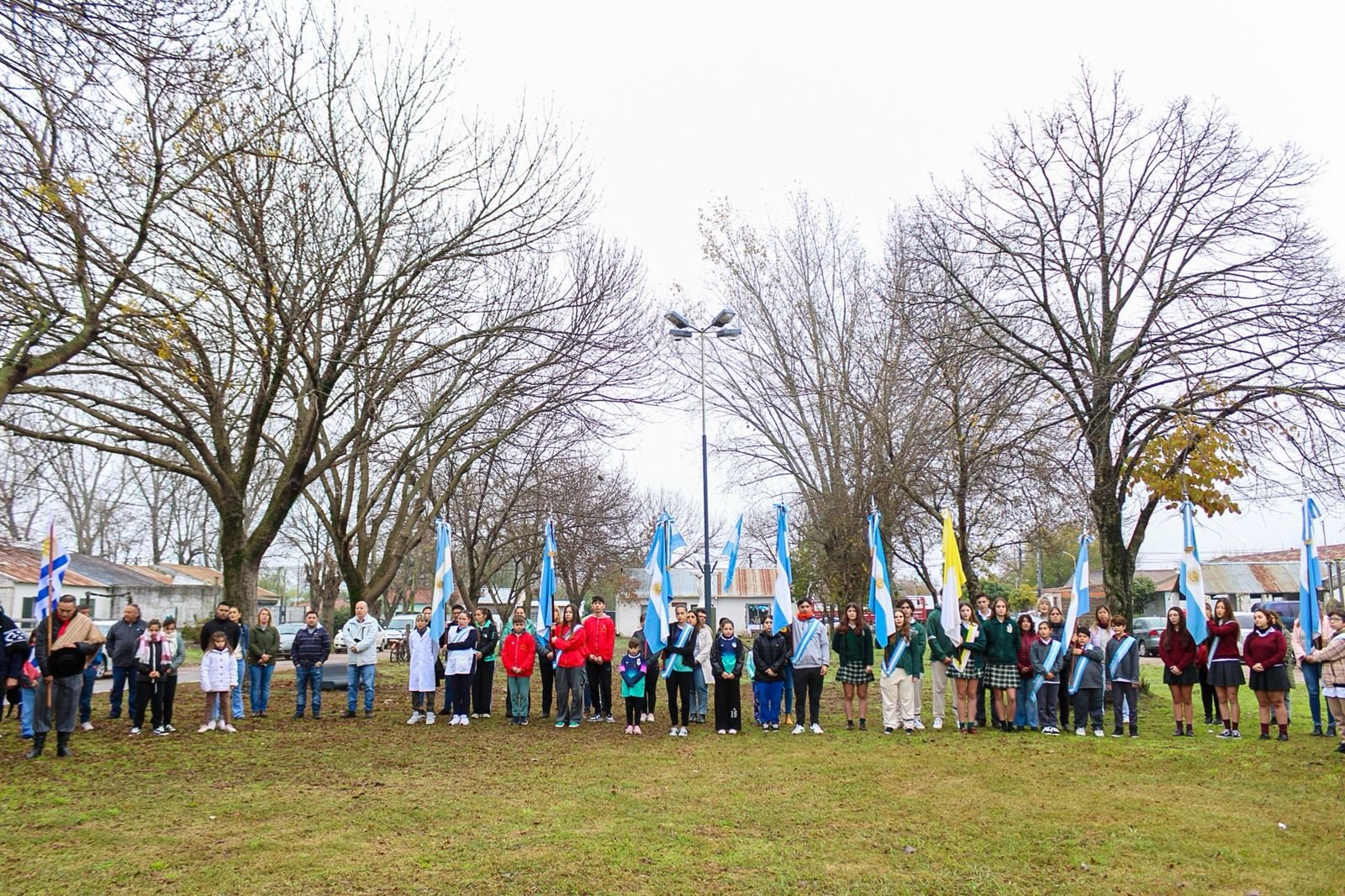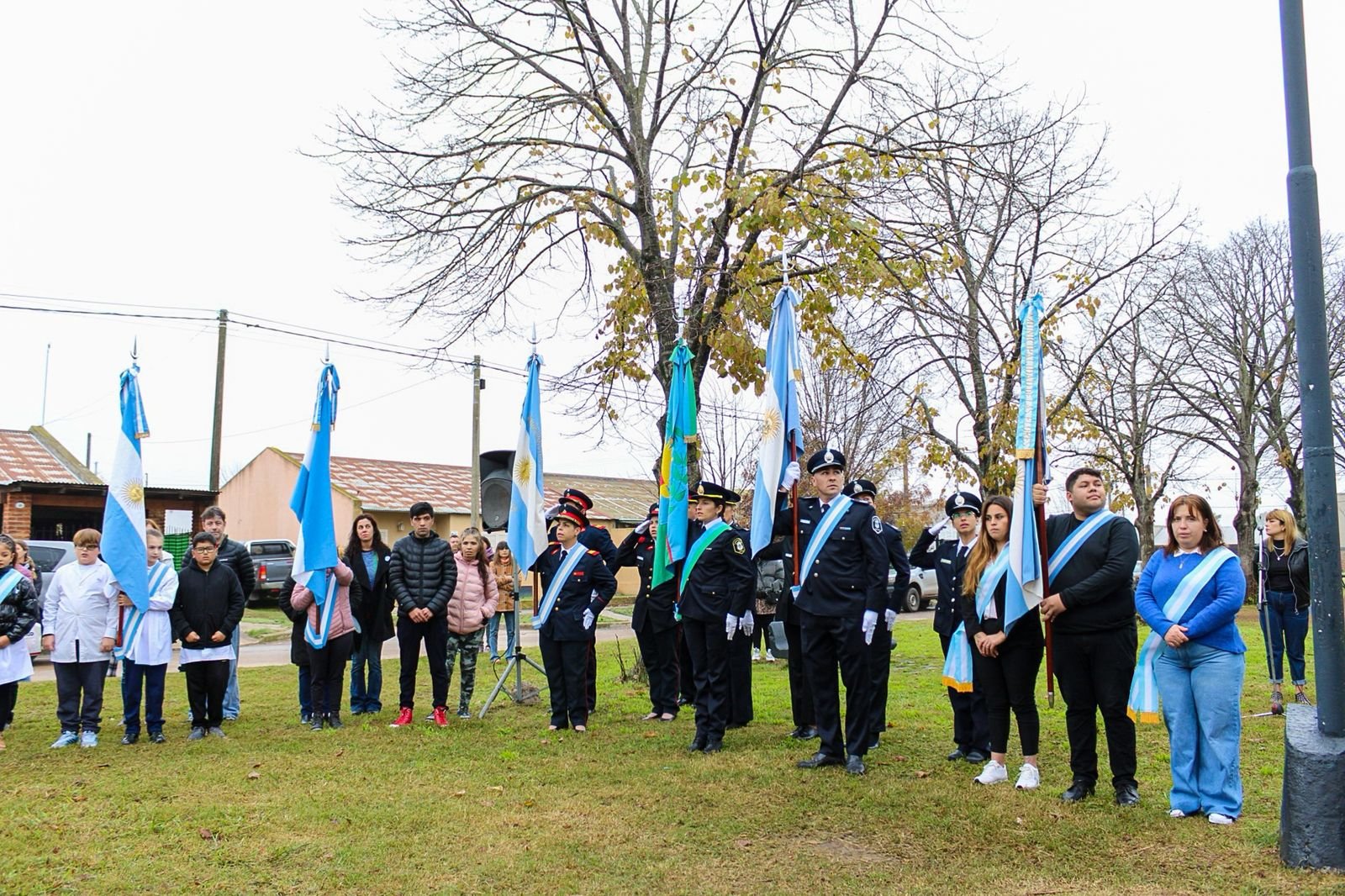 El Acto Oficial se concentró en la Plaza de las Provincias del Barrio 25 de Mayo con presencia también de autoridades, gremios, vecinos y familias.