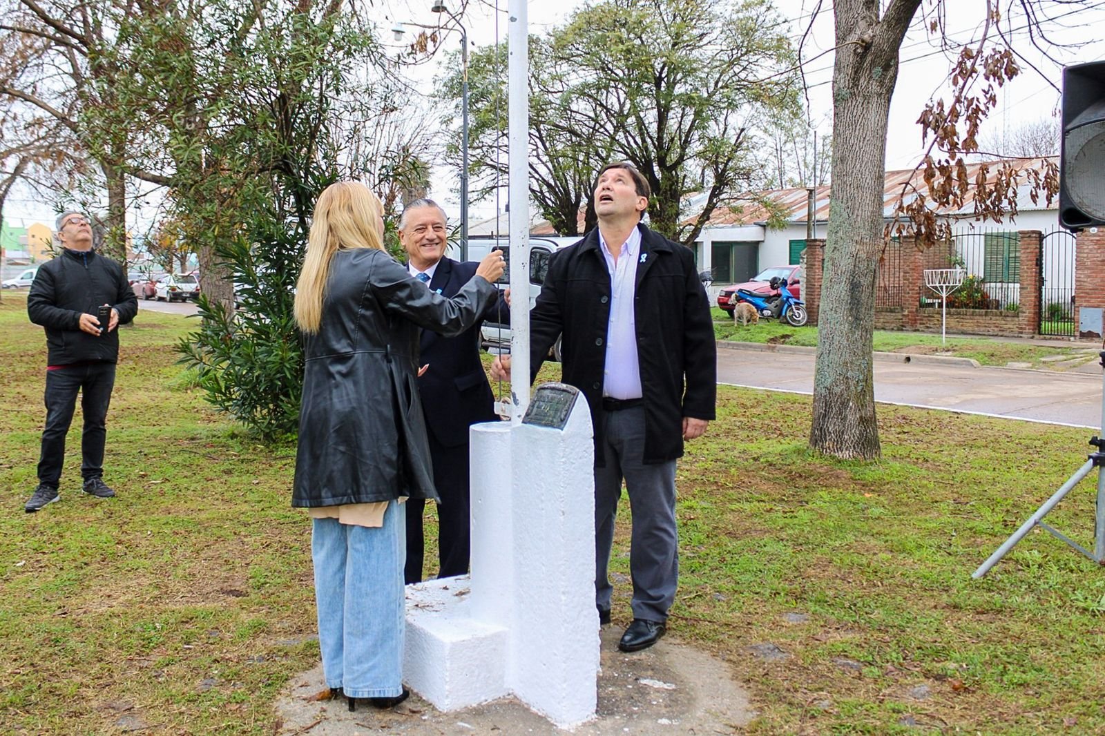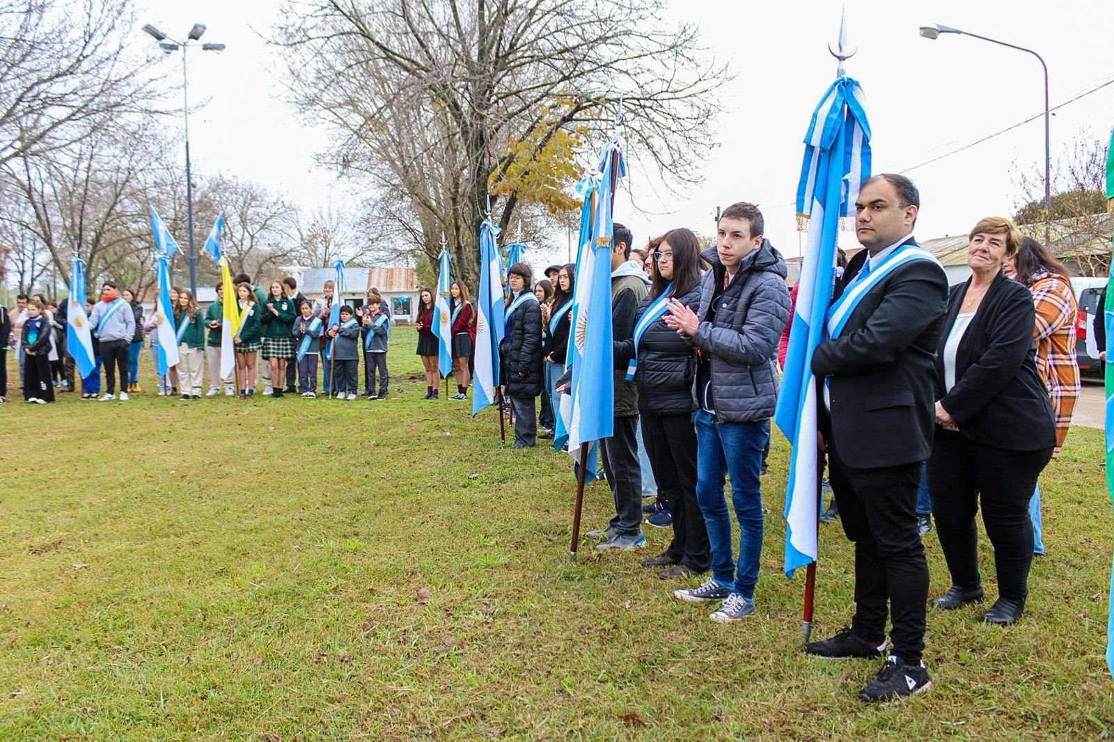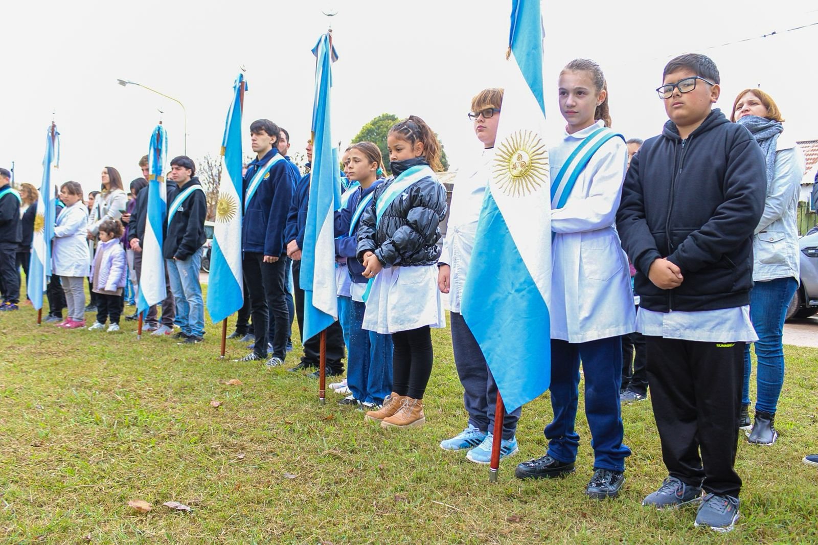 Luego del izamiento de la Bandera Argentina en el mástil central, se cantó el Himno Nacional y representantes del Templo Parroquial compartieron una oración con los presentes.