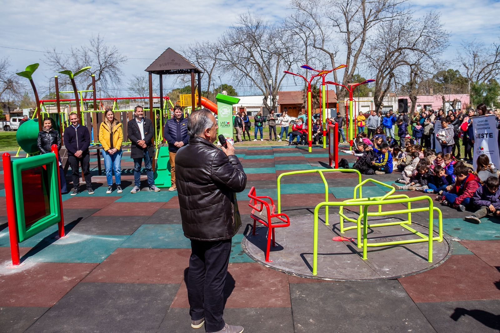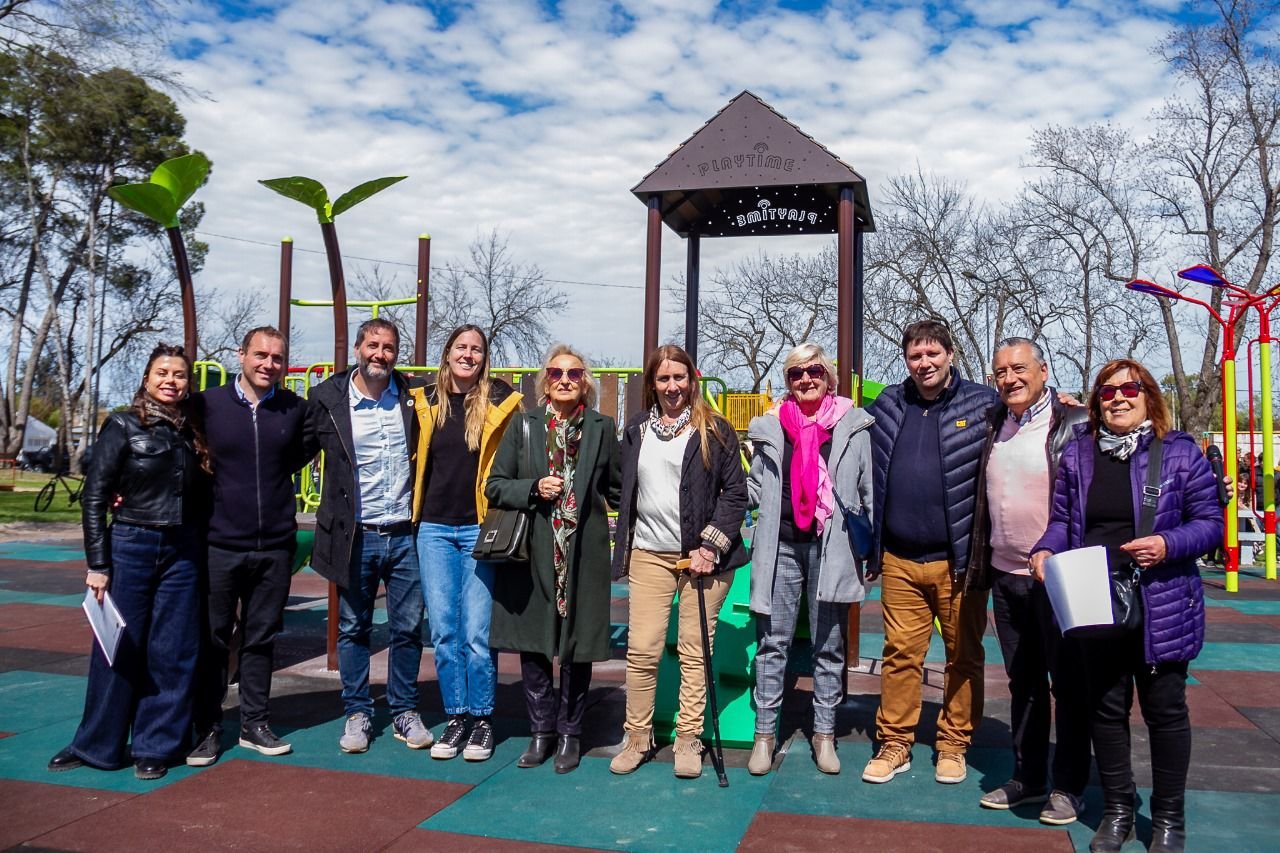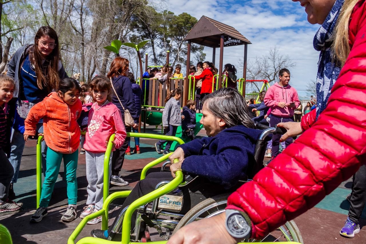 En una jornada espléndida, que contó con la presencia del intendente Alberto Gelené; el vicepresidente de la Fundación Banco Provincia, Alejandro Alegretti y de la subsecretaria de Políticas Sociales del Ministerio de Desarrollo de la Comunidad de la provincia de Buenos Aires, Juliana Petreigne, se inauguró el Parque de Juegos Inclusivos construido en Plaza Sol.