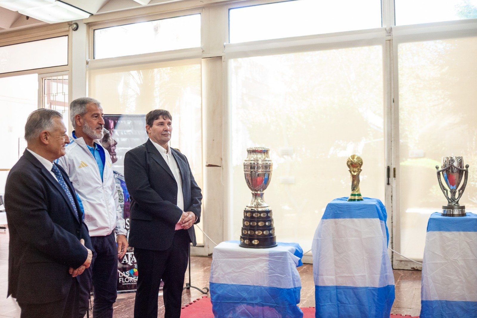 A un ritmo incesante debido a la gran cantidad de gente que se acercó al Salón Blanco del Palacio Municipal, se exhibieron ayer martes 25 de marzo en Las Flores la réplica de la Copa del Mundo ganada por Argentina en el último Mundial como así también la Copa América original y la Copa de la Finalísima que la argentina le ganara a Italia en 2022.
