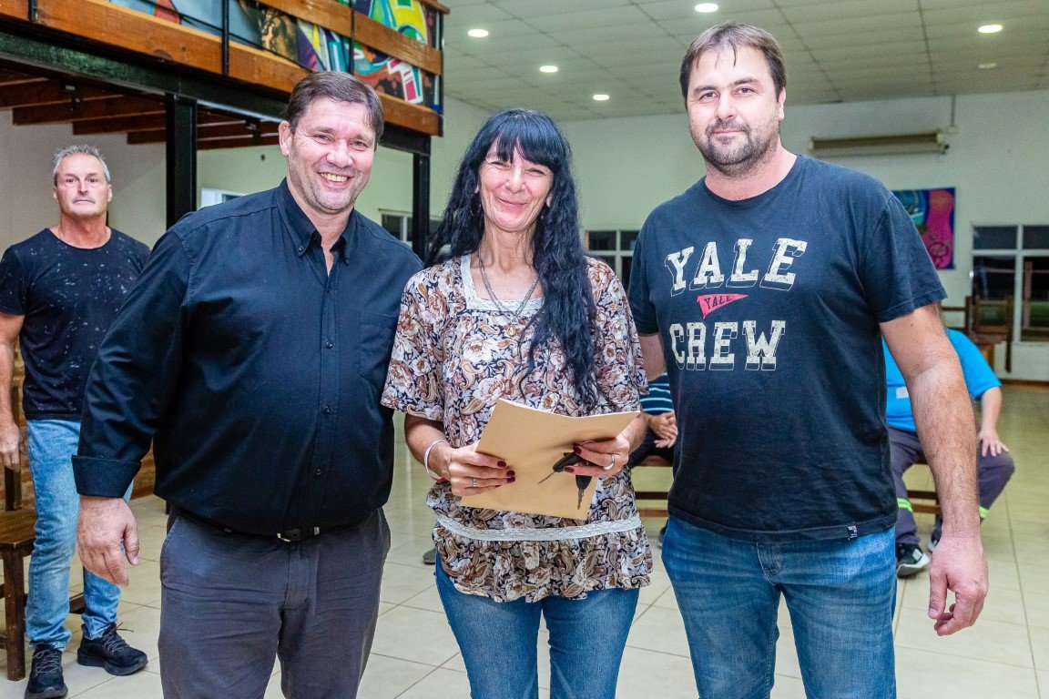 El intendente Fabián Blanstein; el Secretario de Deportes, Favio Folini; y el Director de Deportes, Pedro Cantet, asistieron a la entrega de premios de la octava edición del campeonato de Fútbol Agrario, que se llevó a cabo el viernes 27 de marzo en el SUM del Centro Creativo Municipal “Néstor Kirchner”.
