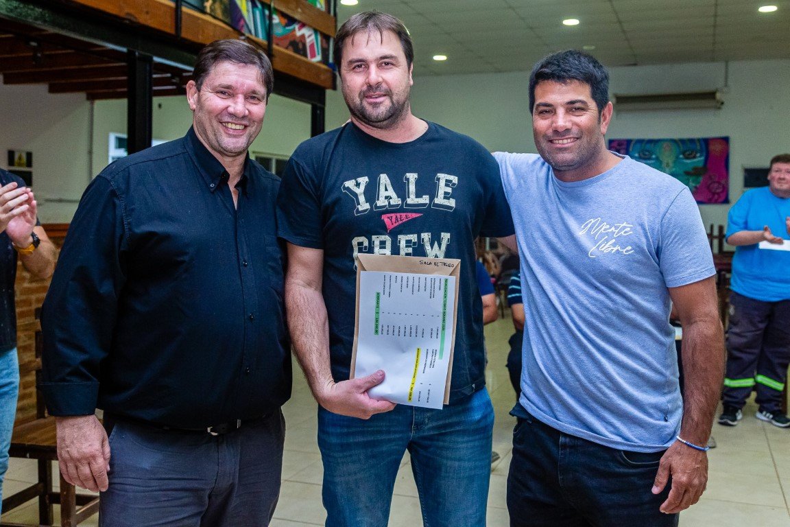 El intendente Fabián Blanstein; el Secretario de Deportes, Favio Folini; y el Director de Deportes, Pedro Cantet, asistieron a la entrega de premios de la octava edición del campeonato de Fútbol Agrario, que se llevó a cabo el viernes 27 de marzo en el SUM del Centro Creativo Municipal “Néstor Kirchner”.