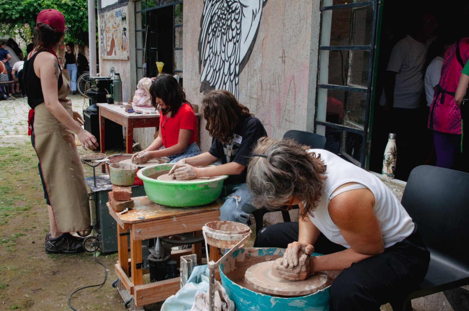 Entre los días sábado y domingo, se realizaron los talleres programados relacionados con la actividad de la cerámica: tratamiento de superficies, manejo de la arcilla, conocimientos en óxidos, barbotinas, construcción de hornos tiro invertido con ladrillo, tierra y viruta y demás acciones, fue lo que predominó en cada jornada.