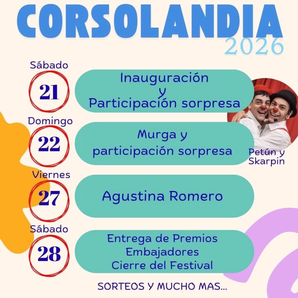 El evento, organizado por la Comisión de Corsolandia y que cuenta con el apoyo de la Municipalidad de Las Flores, tendrá además distintas propuestas: murga, actuación de Agustina Romero, participaciones sorpresa, “Petún y Skarpin”, sorteos y en la jornada de cierre entrega de premios y elección de Embajadores.