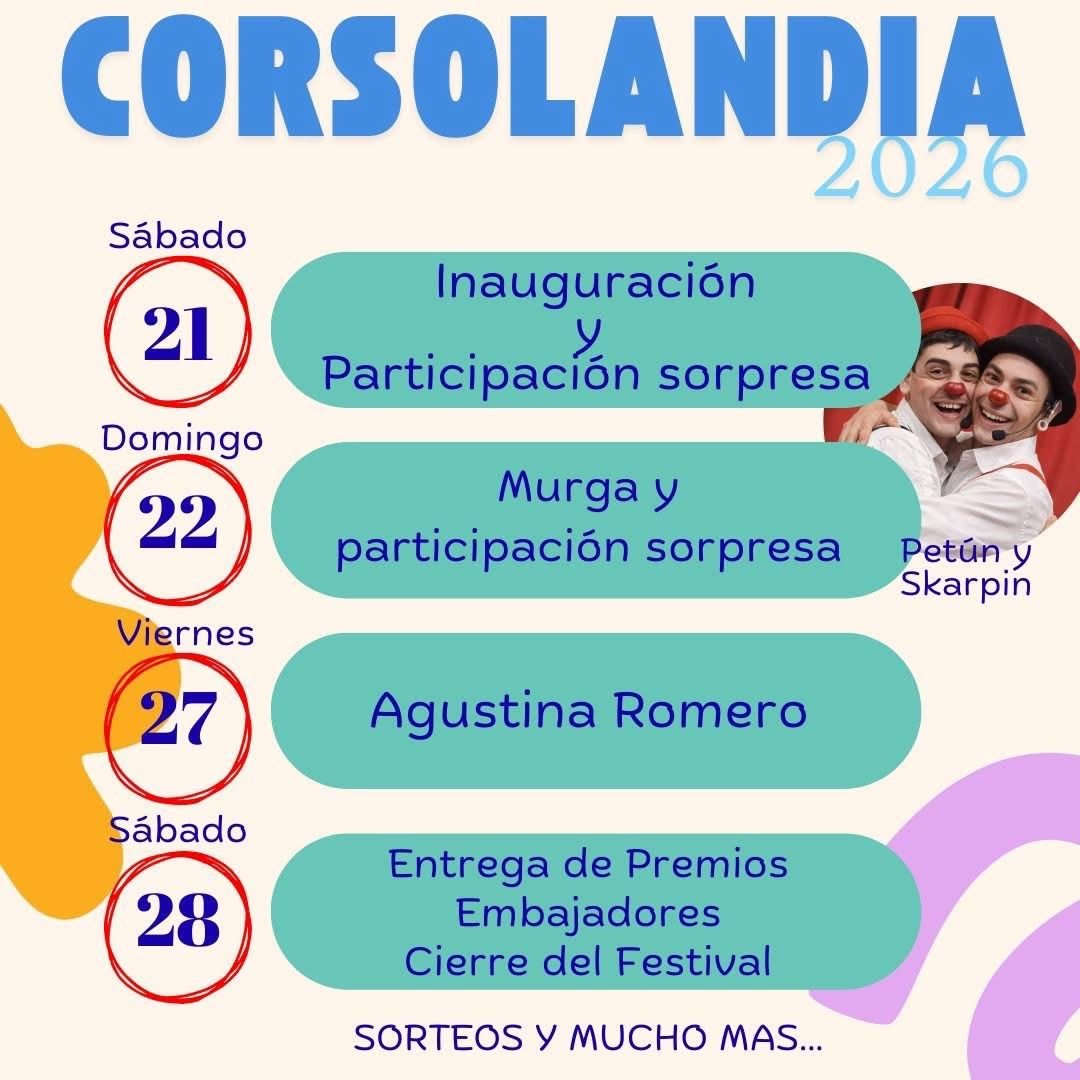 El evento, organizado por la Comisión de Corsolandia y que cuenta con el apoyo de la Municipalidad de Las Flores, tendrá además distintas propuestas: murga, actuación de Agustina Romero, participaciones sorpresa, “Petún y Skarpin”, sorteos y en la jornada de cierre entrega de premios y elección de Embajadores.
