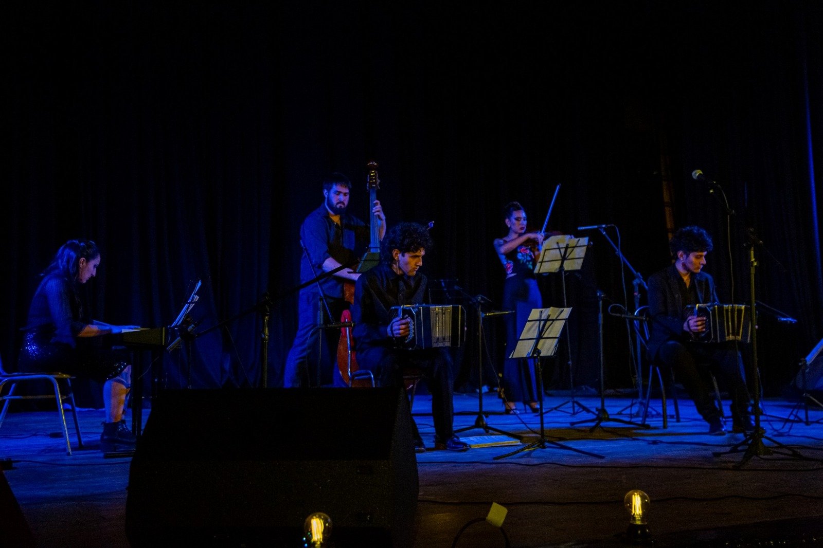 Acompañados por la magnífica voz de Milagros Amud, finalista de la Voz Argentina, el conjunto de música popular argentina generó un valioso concierto que fue muy disfrutado por los espectadores que acudieron a la sala de la avenida Carmen.