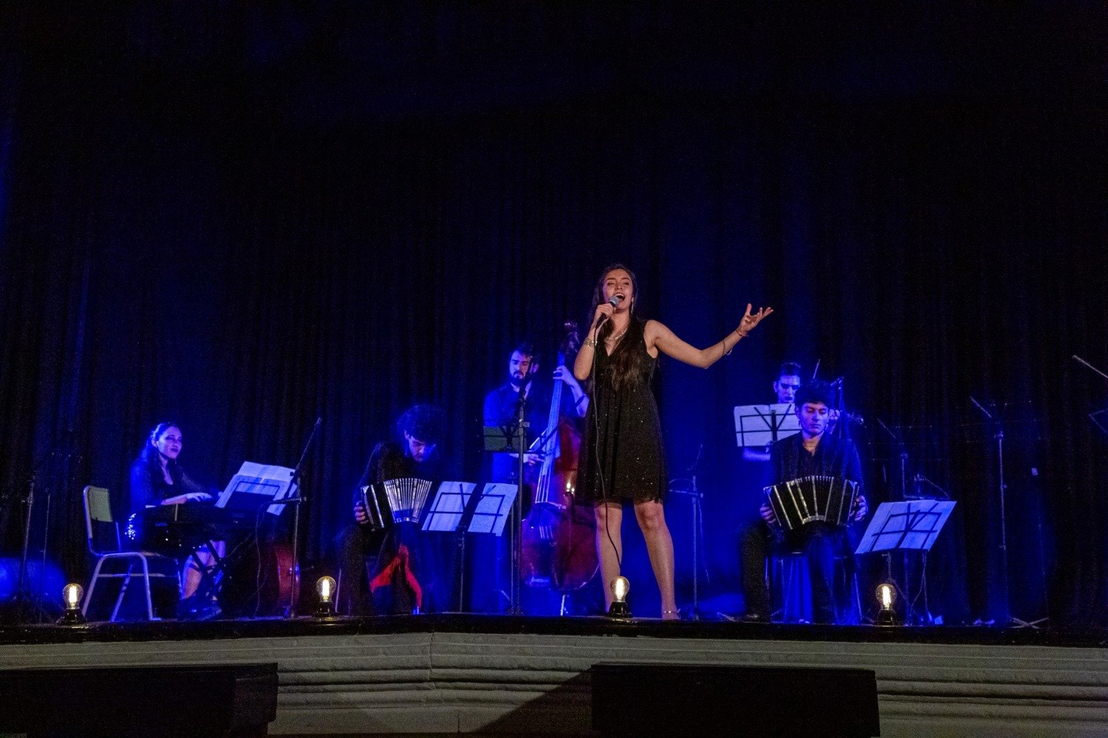 Acompañados por la magnífica voz de Milagros Amud, finalista de la Voz Argentina, el conjunto de música popular argentina generó un valioso concierto que fue muy disfrutado por los espectadores que acudieron a la sala de la avenida Carmen.