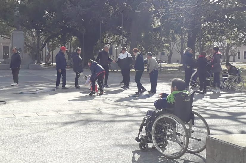 El jueves de la semana pasada y el último lunes, profesores de la Escuela Municipal de Deporte Adaptado, perteneciente a la Secretaría de Deportes, conjuntamente con docentes del Centro de Día, organizaron una interesante jornada recreativa denominada “Deportes en Invierno”, que se llevó a cabo en el Parque Plaza Montero y Plaza Mitre.