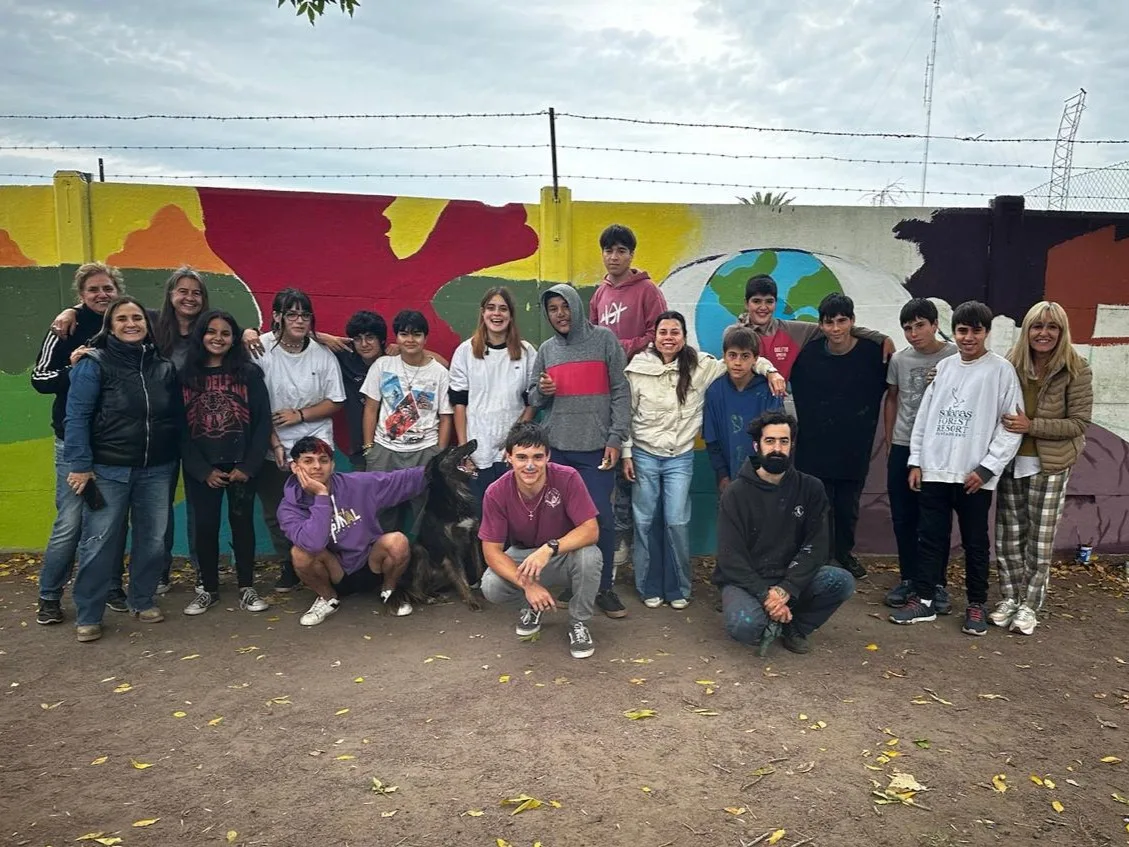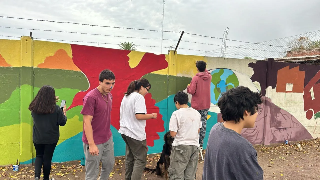 Por la tarde se pintó un mural, cuya temática fue ecología y ambiente, en el paredón correspondiente al predio del CEF N° 6 como cierre del Taller de Muralismo junto al profesor Manuel Díaz Vigo.