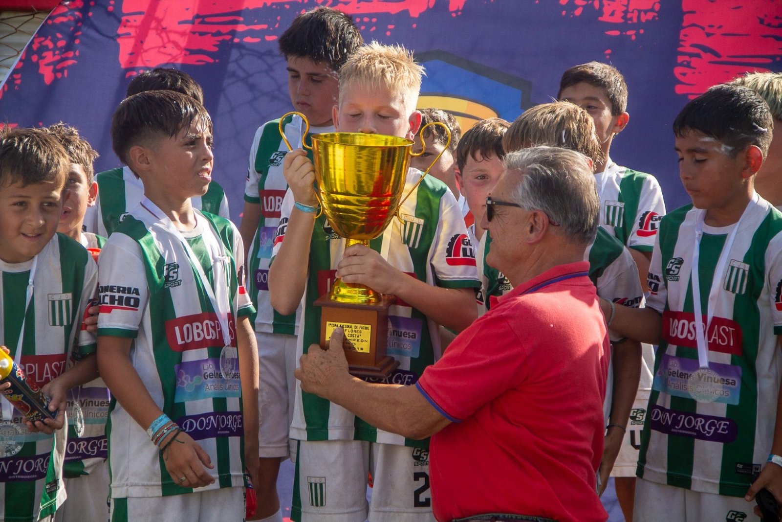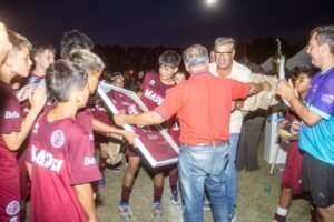 La consagración del Campeón Lanús fue muy festejada en la ceremonia de entrega de premios, lugar donde los chicos del conjunto granate recibieron la copa de manos del propio Tino Costa y del intendente Alberto Gelené quienes estuvieron acompañados por los demás funcionarios y estrechos colaboradores que se sumaron para ser participes necesarios en la mega organización de un gran torneo.