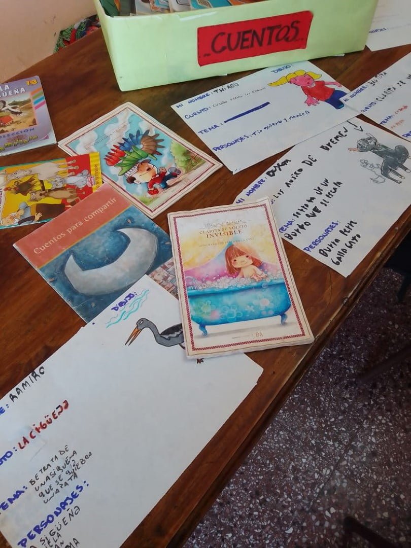 Por otra parte, el Centro Comunitario Ositos Cariñosos visitó la biblioteca donde los alumnos pudieron ver cómo es su funcionamiento. Finalizaron con la lectura de sus propios relatos, los cuales fueron escritos usando tarjetas que elegían al azar, en ellas tenían un inicio, un final, personajes y lugares.