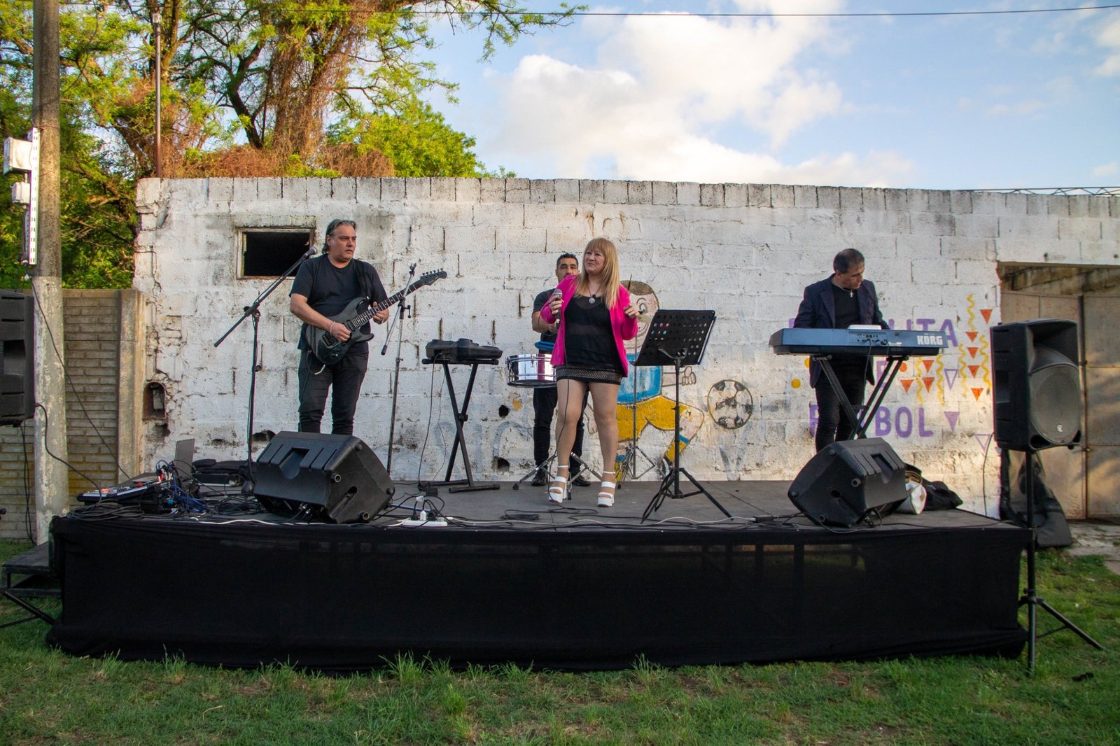 Subieron al escenario montado en la vereda de ingreso al club del barrio: Carlitos y su Nuevo Estilo, la joven cantante Daniza y también Karina La Reina con toda su buena música.