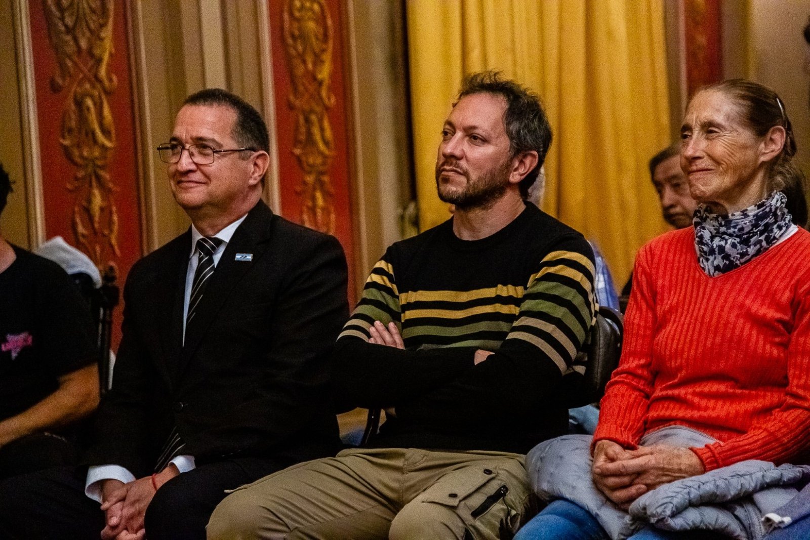Una noche cargada de emotividad y de buenos momentos. Además del público, que desbordó la sala, estuvieron presentes en la última jornada del año 2025 del ciclo Folclore para Escuchar, el intendente interino Fabián Blanstein, el intendente Alberto Gelené, el director de Cultura, Juan Bautista Saladino y demás autoridades municipales.