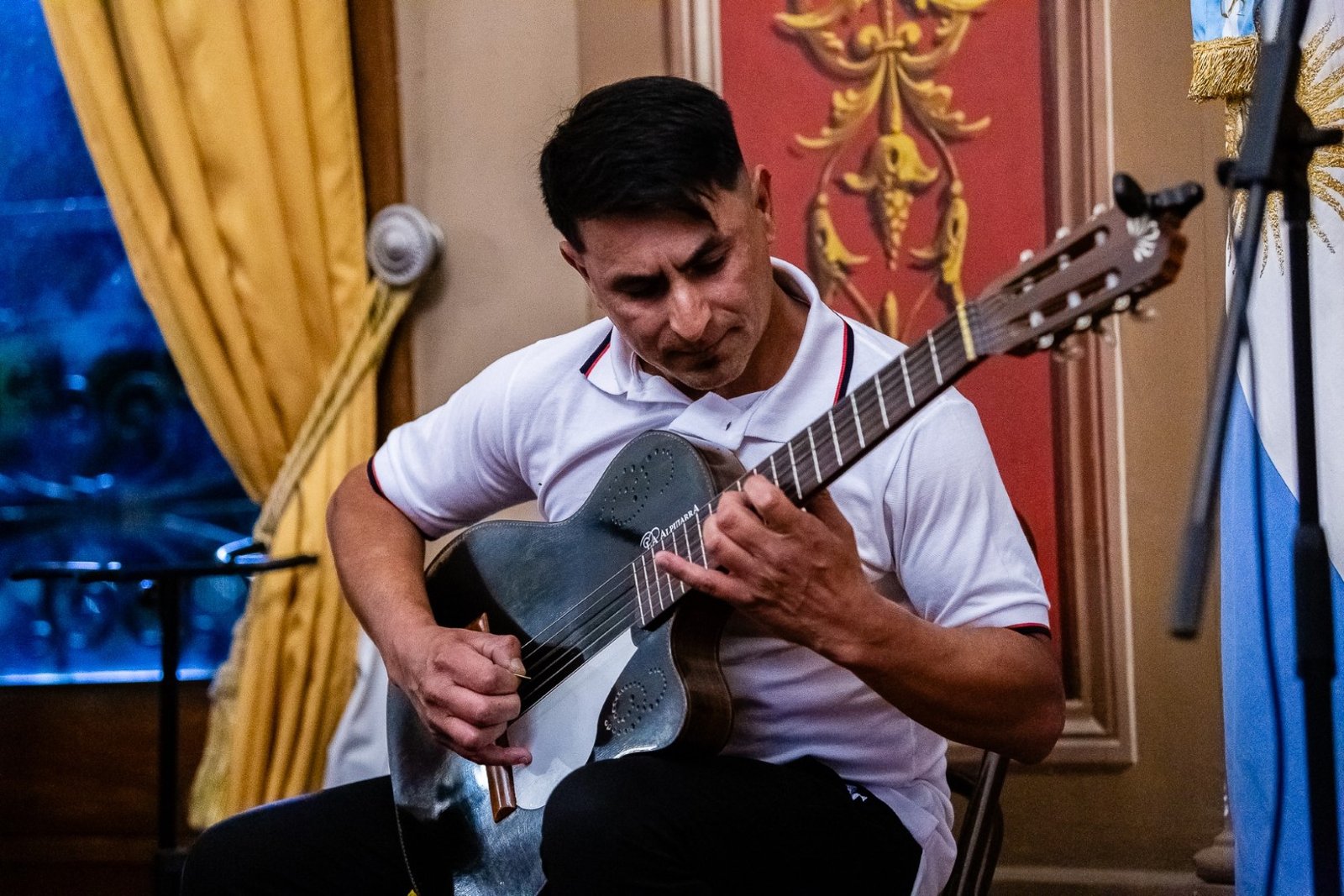 Acompañado por Diego Suarez y su guitarra, el animador de fiestas criollas, con todos sus versos y poesías, brindó un lindo y emotivo espectáculo que la gente que colmó el Salón Rojo Municipal disfrutó a pleno y premió con fuertes aplausos cada una de las intervenciones artísticas.
